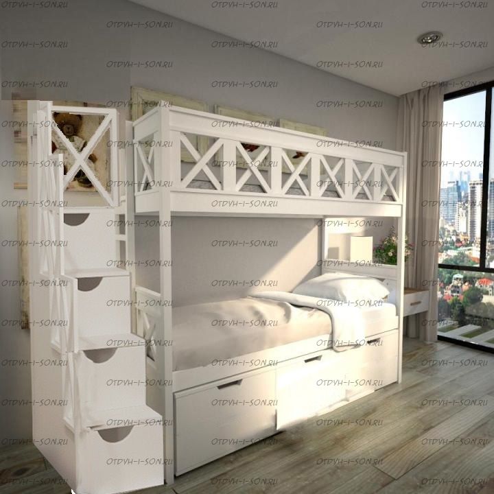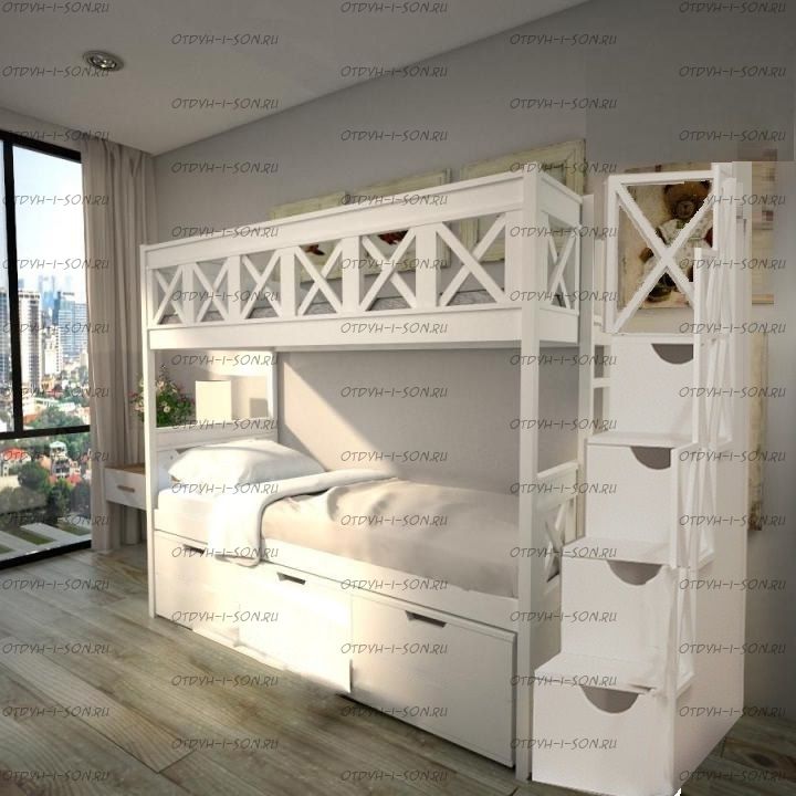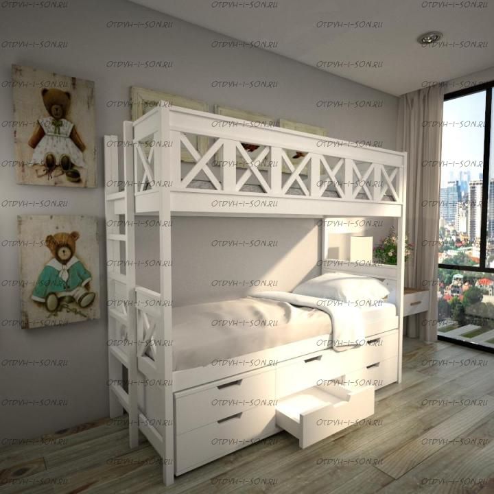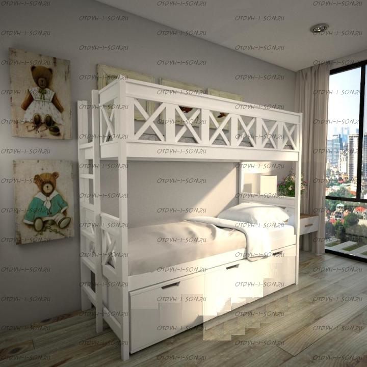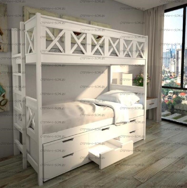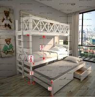 Кровать двухъярусная Factory №7С может быть изготовлена как трехъярусная кровать.