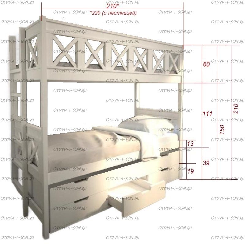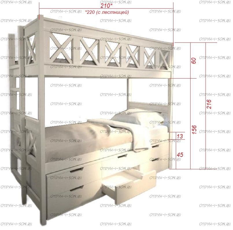Кровать двухъярусная Factory №7С может быть изготовлена как трехъярусная кровать. Характеристики: Размер спального места верхнего яруса: 70х180, 80х180 см, 80х190 см, 90х190 см., 90х200 см. (и любые другие на Ваш вкус) Размер спального места нижнего яруса: 80х190, 80х200, 90х190, 90х200, 120х190, 120х200, 130х200, 140х190 см. (и любые другие на Ваш вкус) Внешние размеры: Материал: сосна Возможны любые нестандартные размеры Вес кровати: Объем кровати: Цвет: Возможность трансформации в отдельно стоящие кровать чердак и двуспальную кровать; - без матрасов; опорный брус спинок(ножки) - 40х80мм. Внимание: для любой модели кровати возможно увеличение высоты бортиков кровати! Возможно изготовление кровати нестандартных размеров по вашим замерам, доплата за нестандартный размер: - за кровать + 10% от стоимости изделия; Производство Владимирской мебельной фабрики, кровать доставляется напрямую от производителя, самовывоз ограничен.
