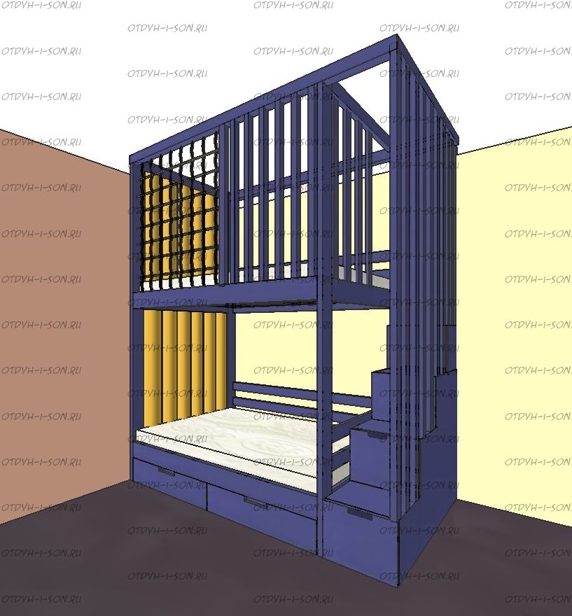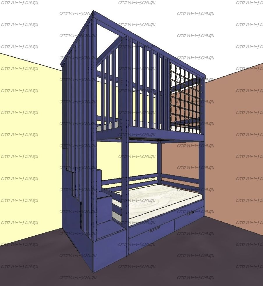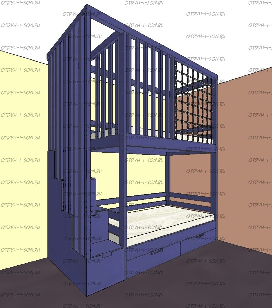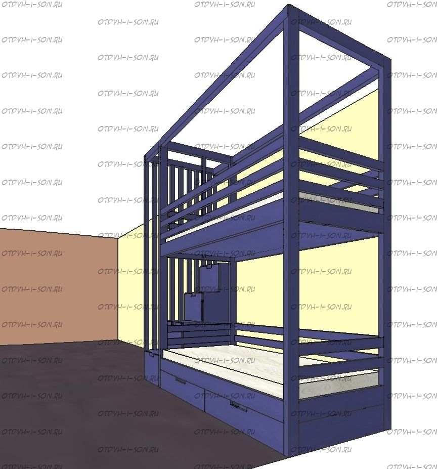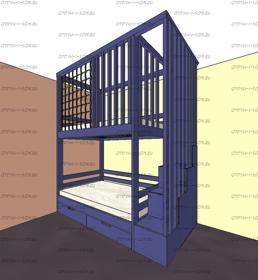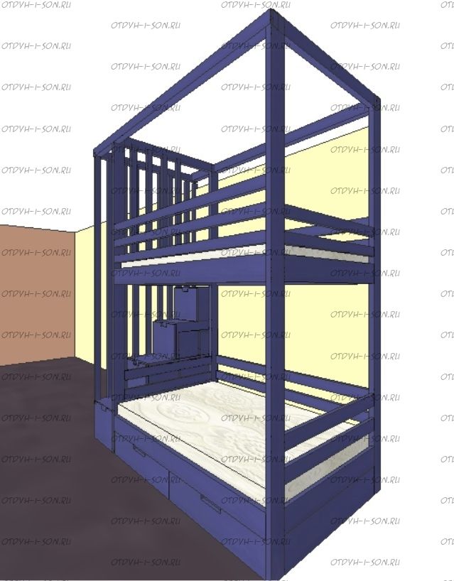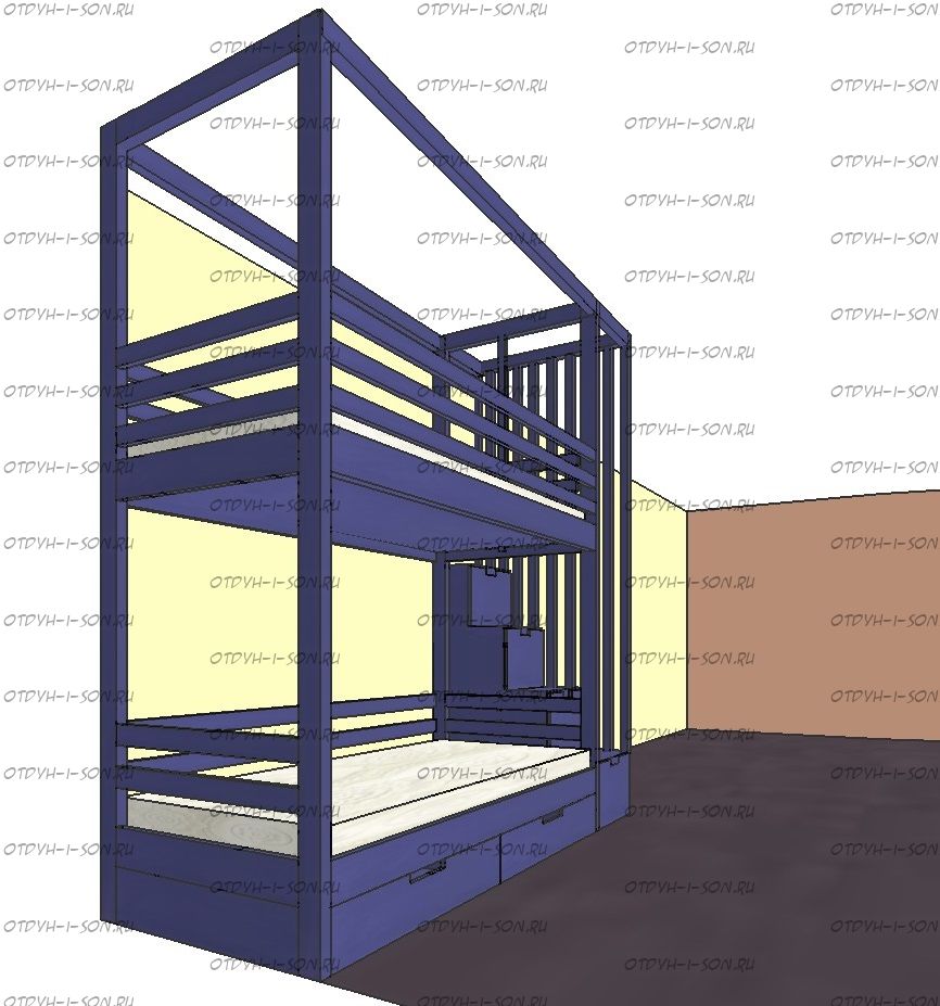 Кровать двухъярусная Домик Fairy Land Sky №5, Массив Характеристики: Размер спального места: 70Х160, 70Х180, 70Х190, 70х200, 80Х160, 80Х180, 80Х190, 80х200, 90Х160, 90Х180, 90Х190, 90х200, 120х190, 120х200 см. Нестандарт: да, возможно, изготавливаем мебель по Вашим проектам Размер, цвет и декор также могут быть индивидуальны. Материалы: массив дерева