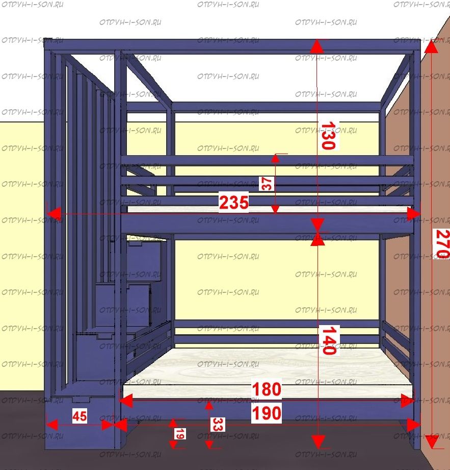 | Тип изделия | Кровать двухъярусная и лестница-комод |