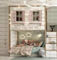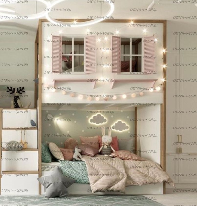 Кровать двухъярусная Домик Fairy Land Sky Santana №16, Массив Характеристики: Размер спального места: 70Х160, 70Х180, 70Х190, 70х200, 80Х160, 80Х180, 80Х190, 80х200, 90Х160, 90Х180, 90Х190, 90х200, 120х190, 120х200 см. Нестандарт: да, возможно, изготавливаем мебель по Вашим проектам Размер, цвет и декор также могут быть индивидуальны. Материалы: массив дерева