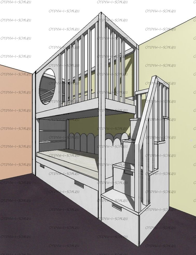 Кровать двухъярусная Домик Fairy Land Sky Santana №3 изготавливаем в любых размерах,