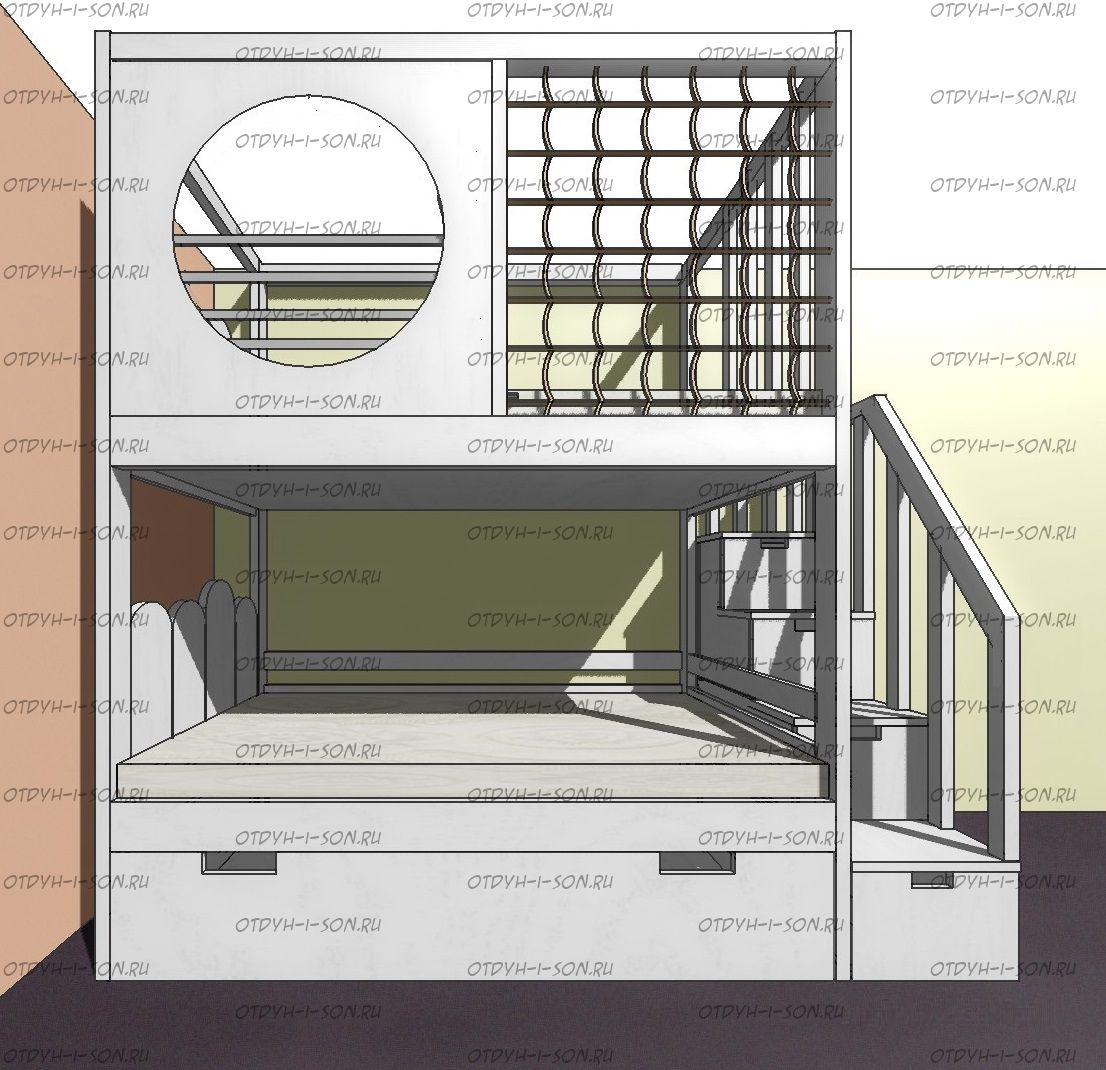 Кровать двухъярусная Домик Fairy Land Sky Santana №3 изготавливаем в любых размерах,