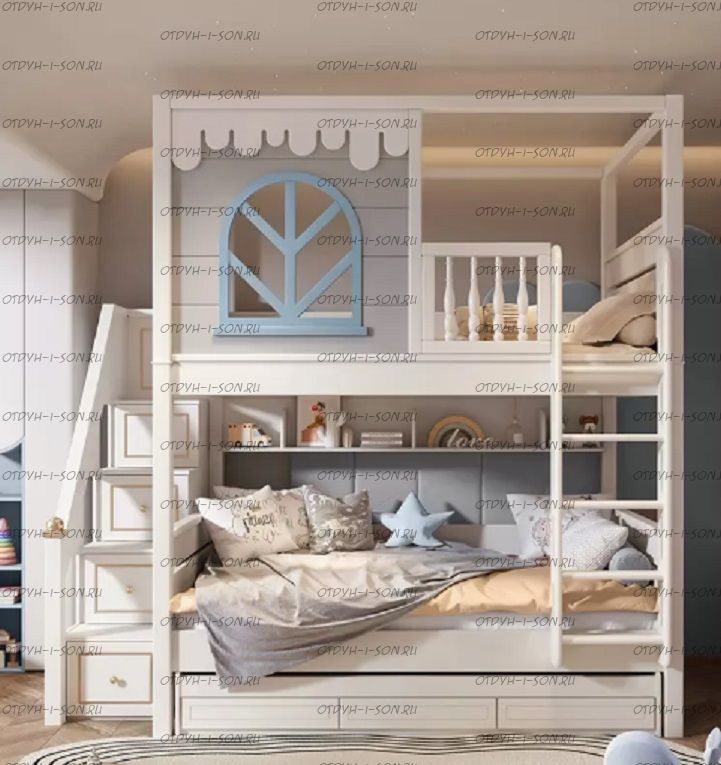 Кровать двухъярусная Домик Santana Sky №48, Массив с мягким бортом внизу.