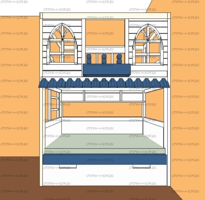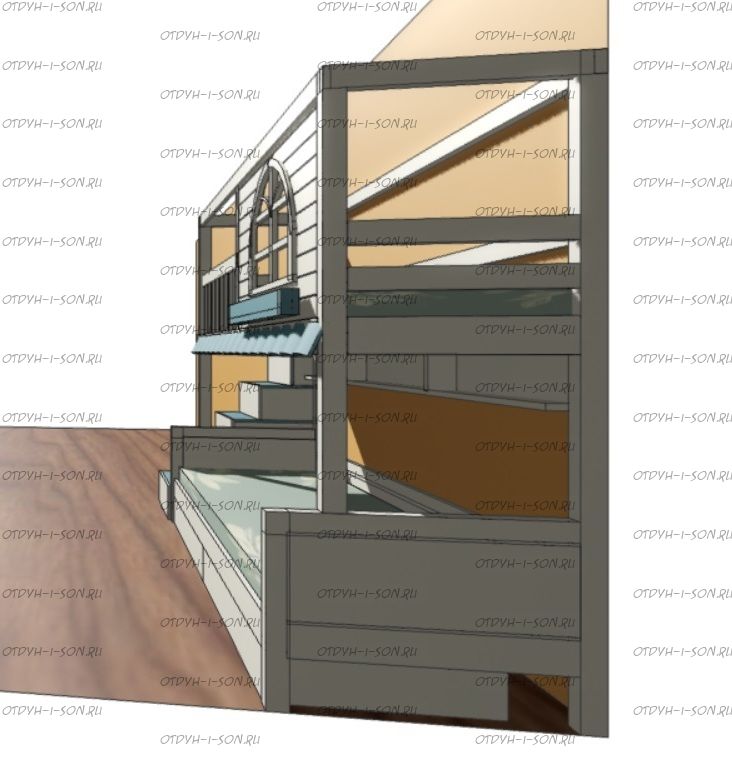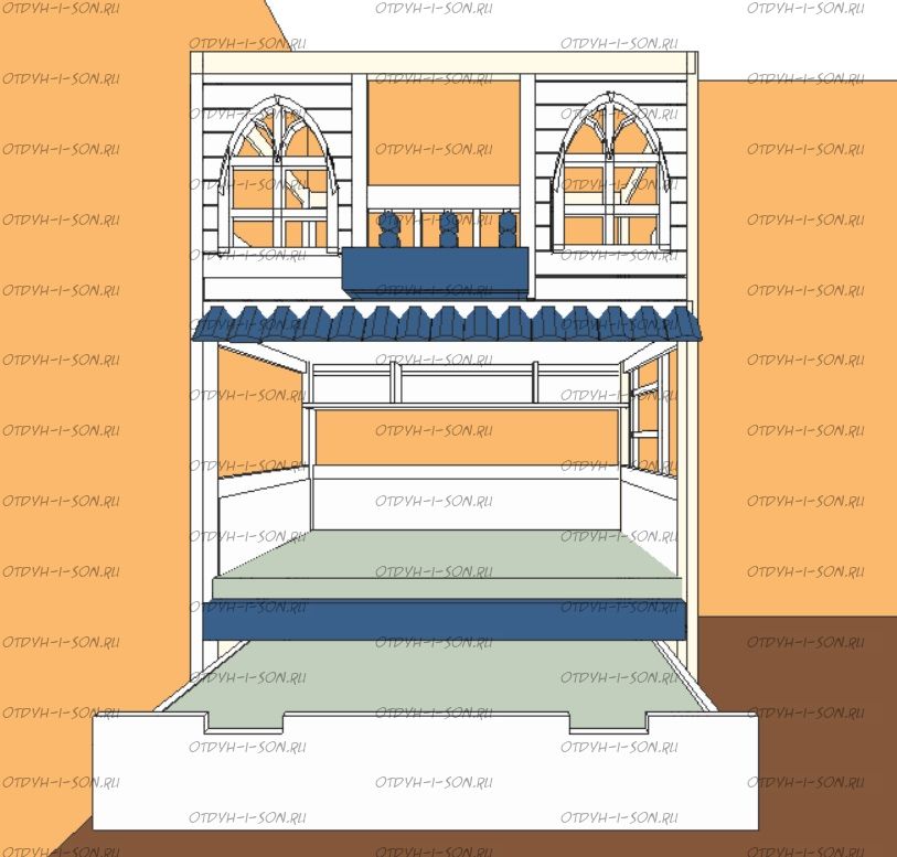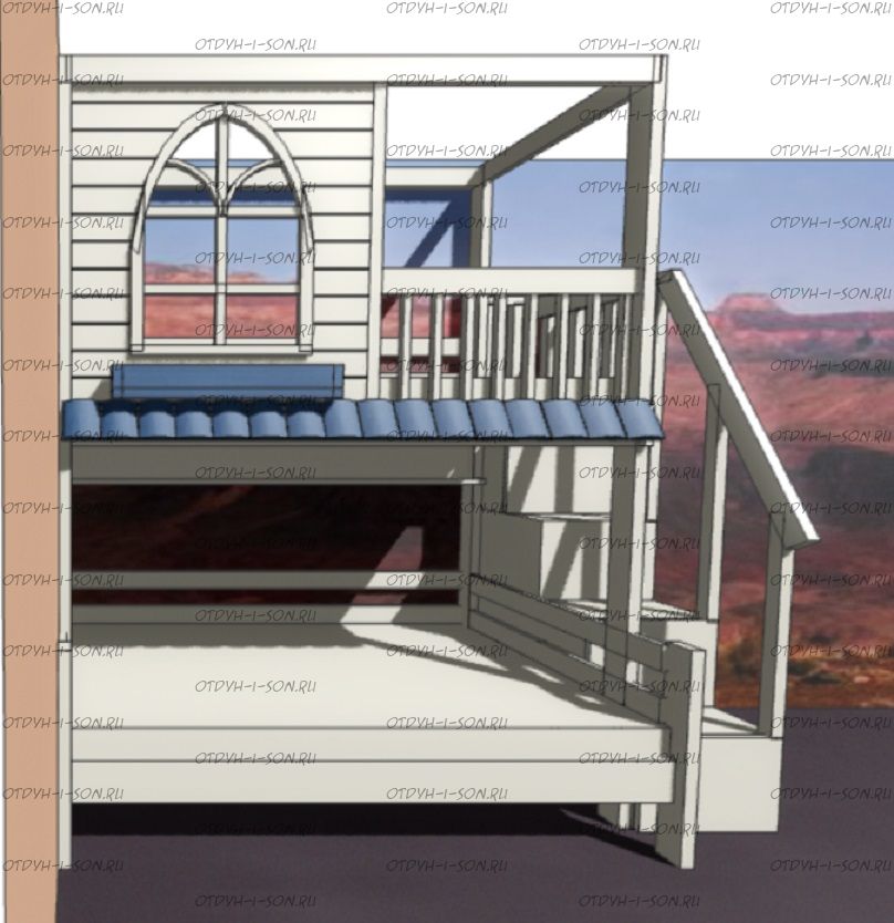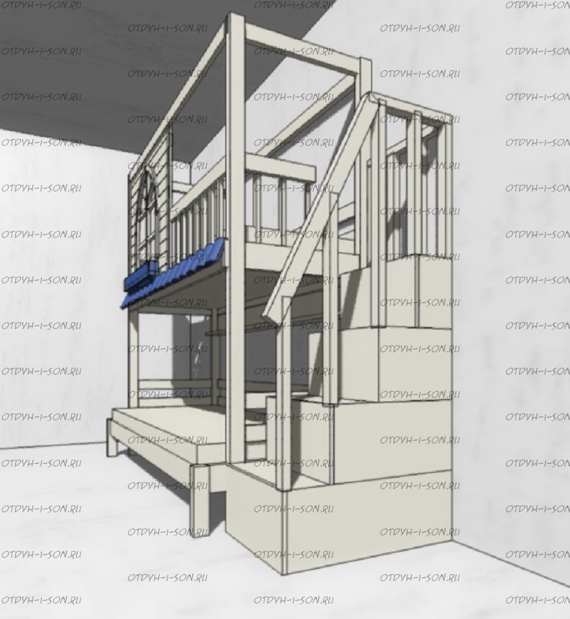 Кровать двухъярусная Домик Santana Sky №22, Массив