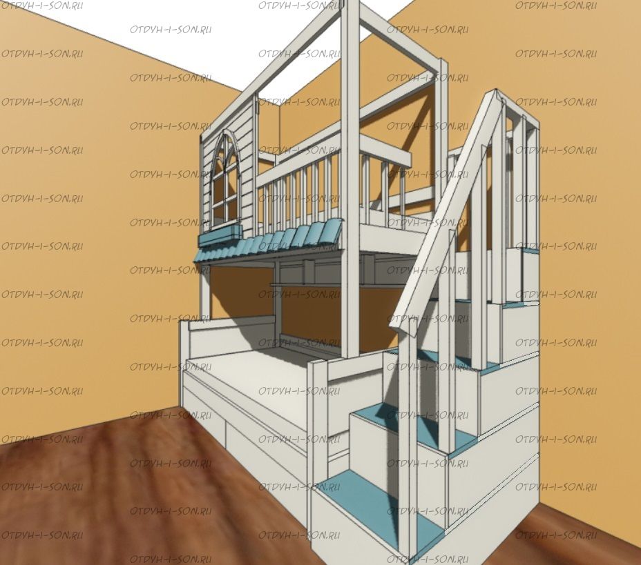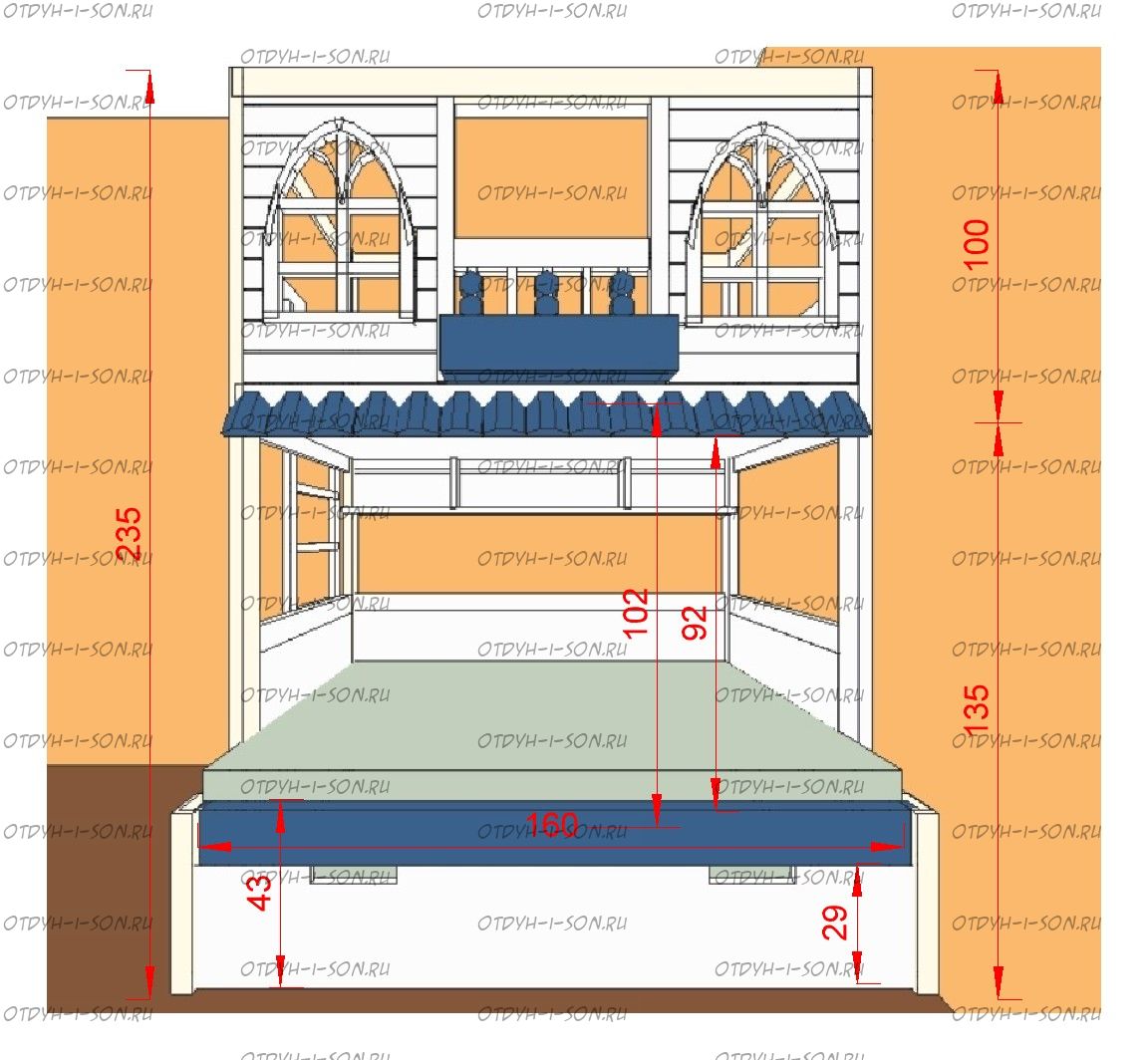 Кровать двухъярусная Домик Santana Sky №22, Массив Характеристики: Размер спального места: 70Х160, 70Х180, 70Х190, 70х200, 80Х160, 80Х180, 80Х190, 80х200, 90Х160, 90Х180, 90Х190, 90х200, 120х190, 120х200 см. Нестандарт: да, возможно, изготавливаем мебель по Вашим проектам Размер, цвет и декор также могут быть индивидуальны. Материалы: массив дерева