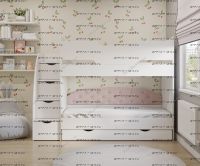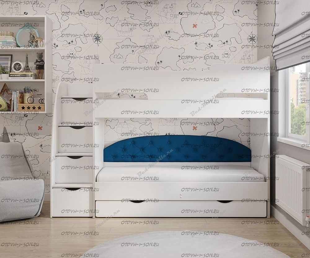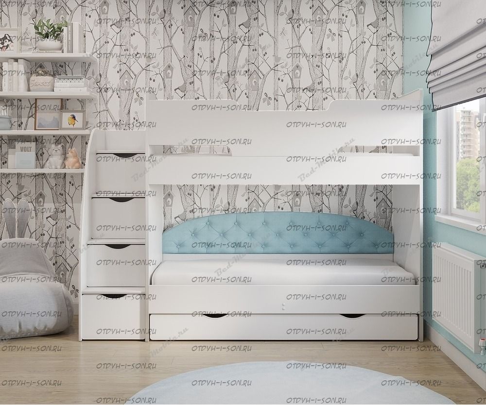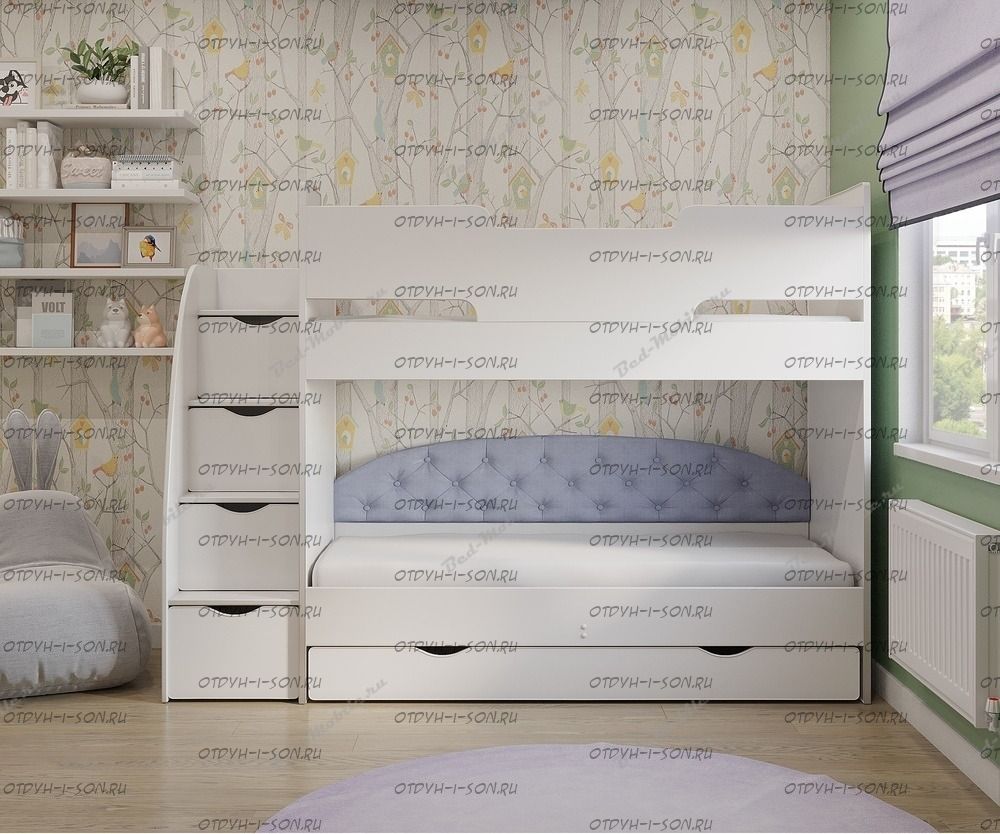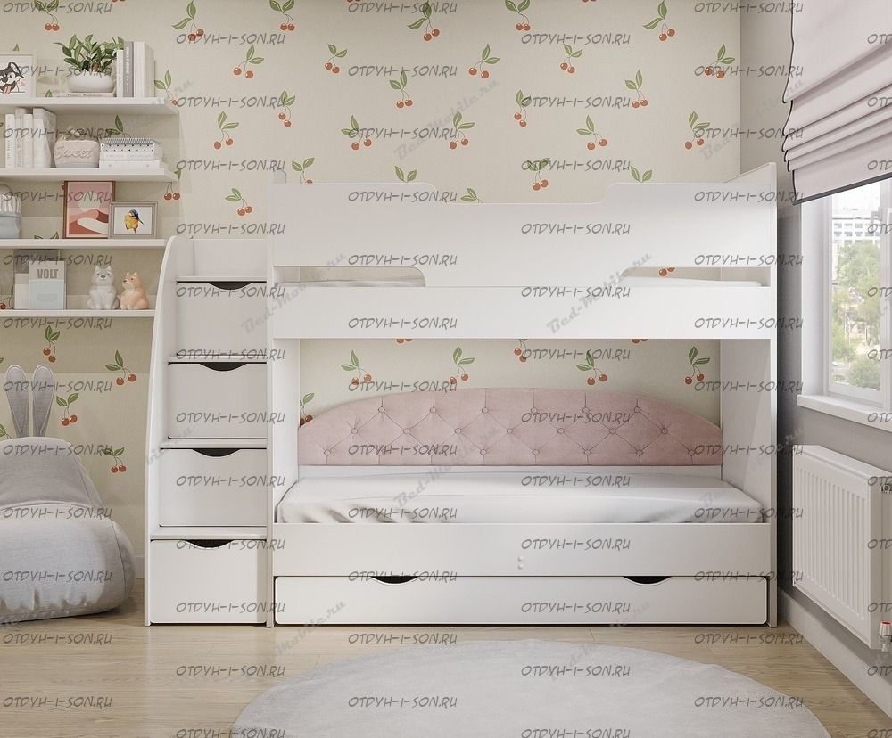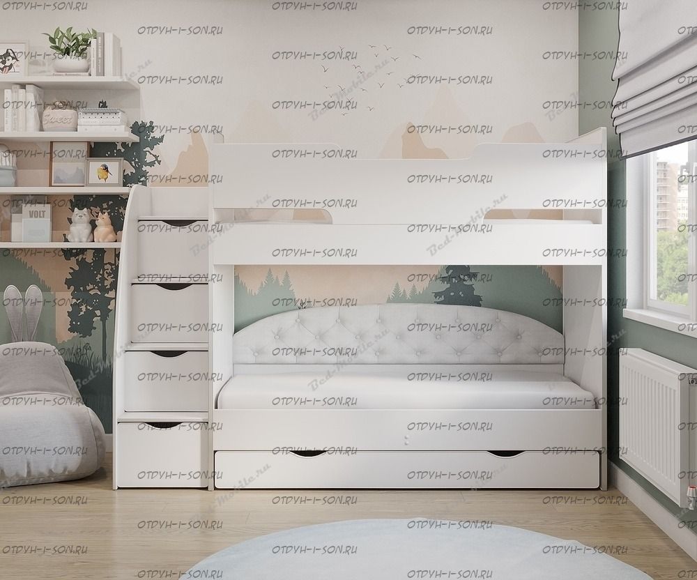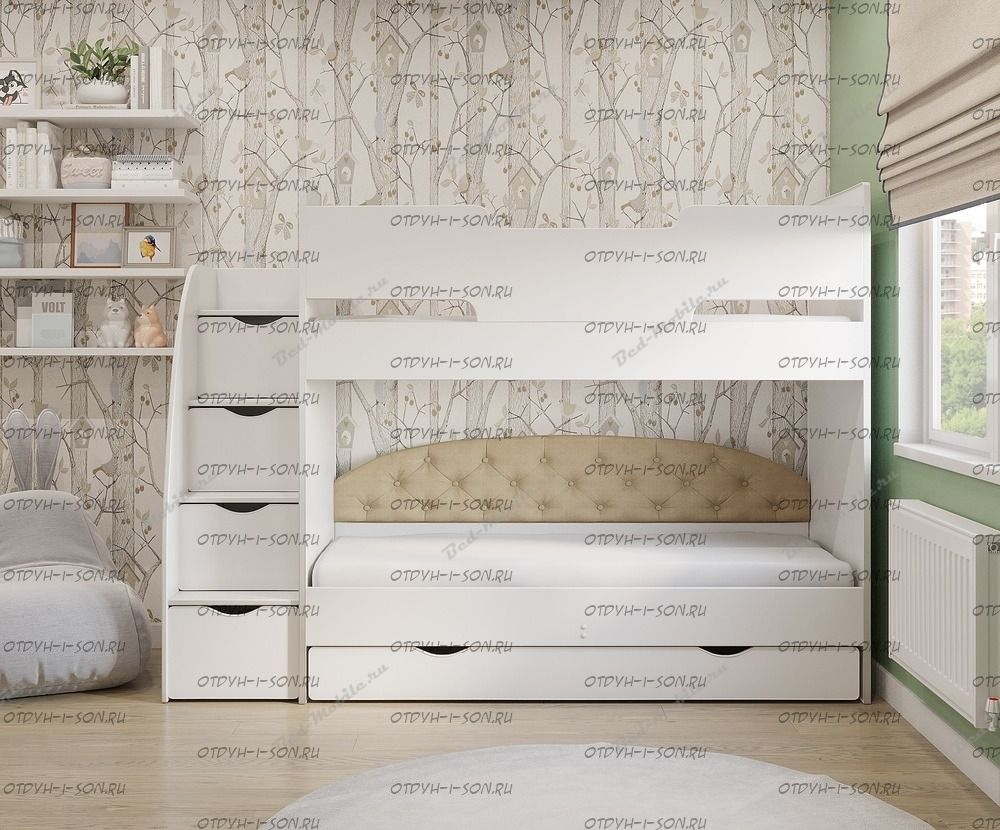 Кровать детская двухъярусная с мягкой спинкой "Юниор-13" белая