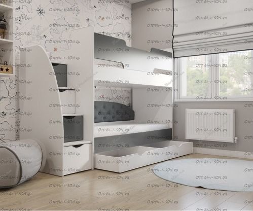 Дополнительные можно приобрести модули для детской комнаты: шкафы, комод, тумбу.