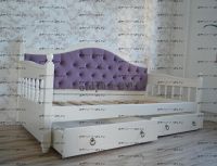 Кровать-диван Массив Молли Прованс, огромный выбор тонировки массива дерева и красок-эмалей, широкий выбор обивочных материалов. Комплектация: Кровать с тремя спинками Прованс Ящики подкроватные докупаются отдельно Характеристики: Размер спального места: 80х190, 80Х200, 90х190, 90Х200 и любые другие на Ваш выбор! Материалы: массив сосны