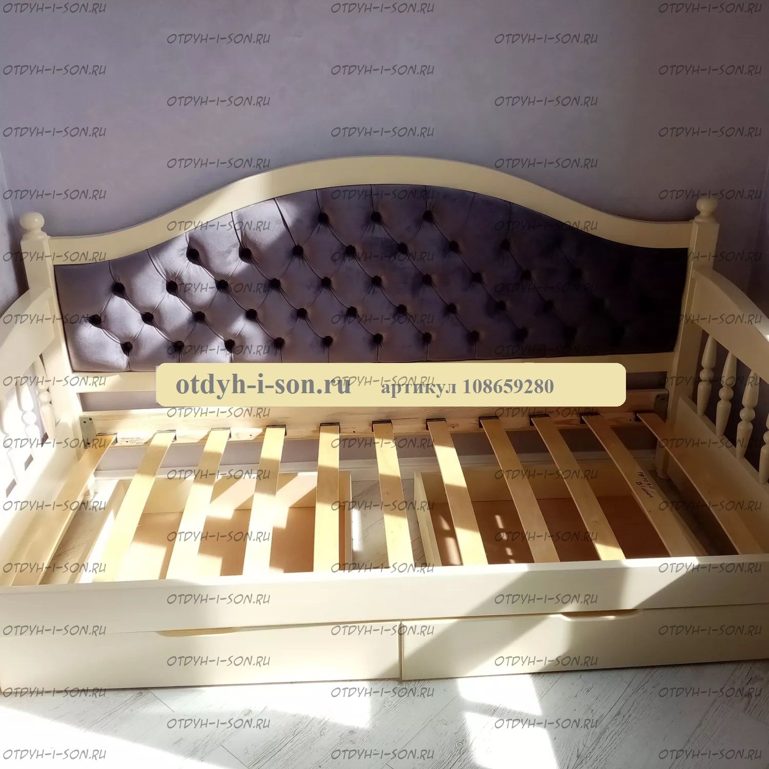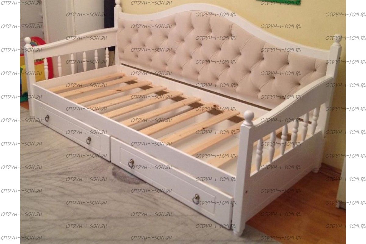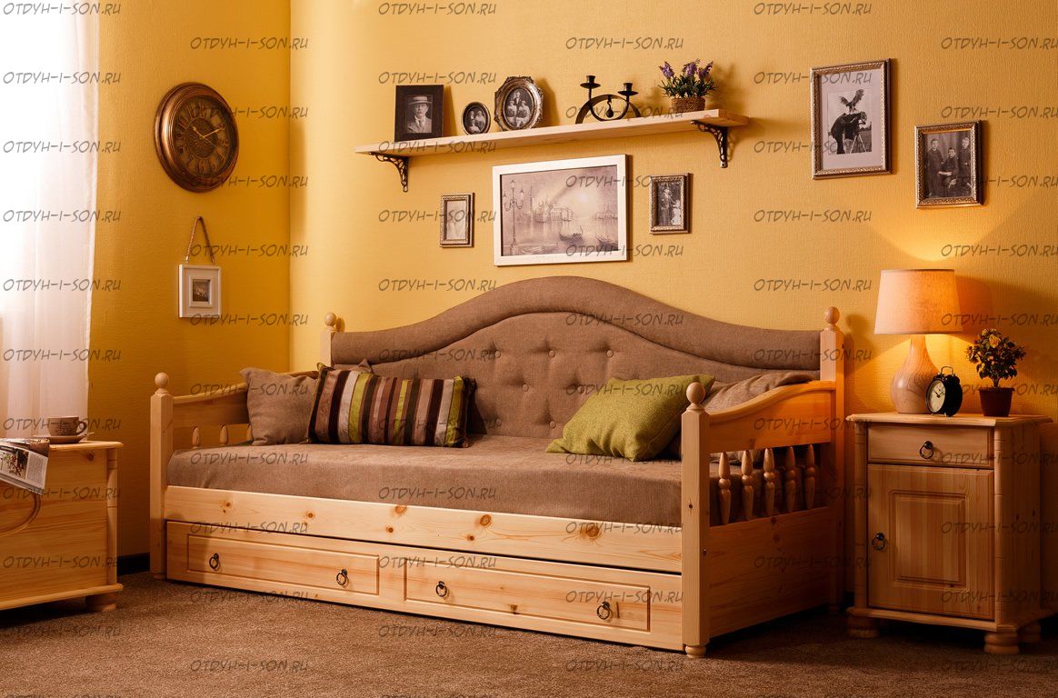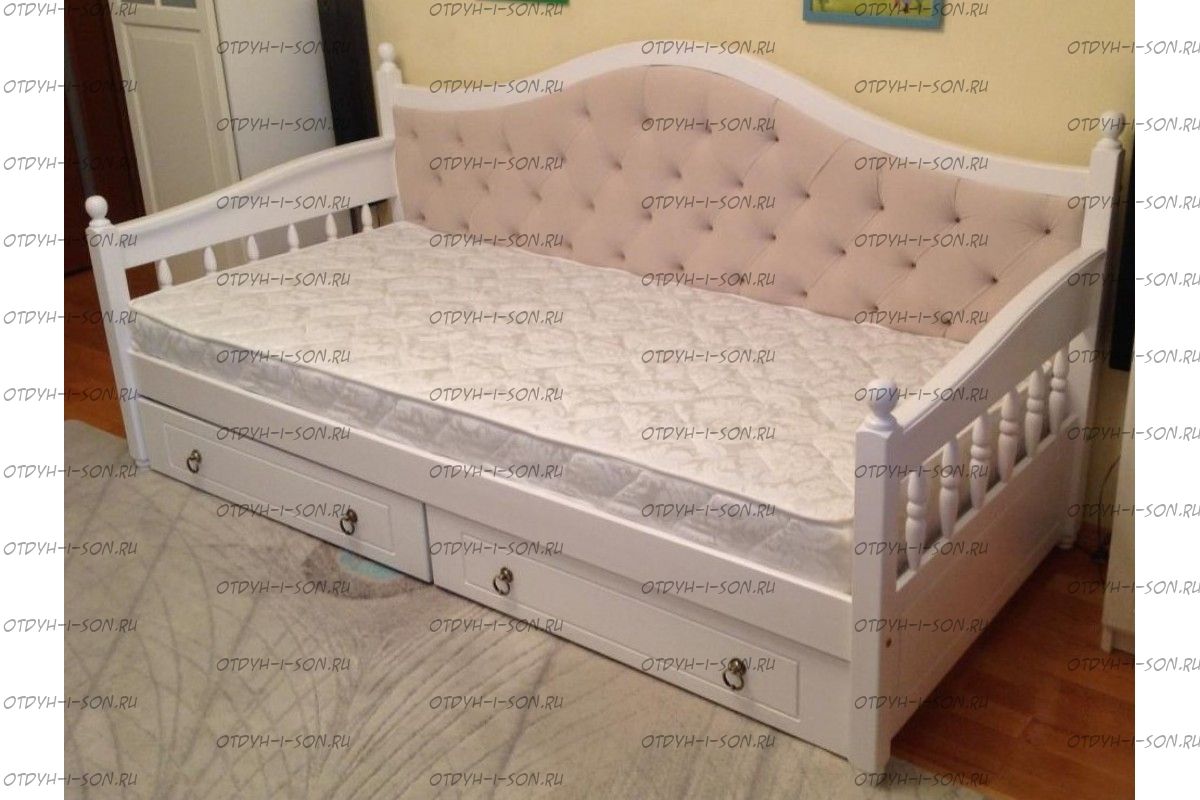 Кровать-диван Массив Молли Прованс огромный выбор тонировки массива дерева и красок-эмалей, широкий выбор обивочных материалов.