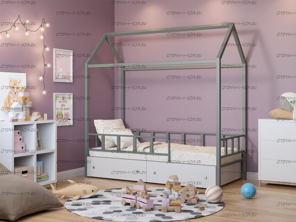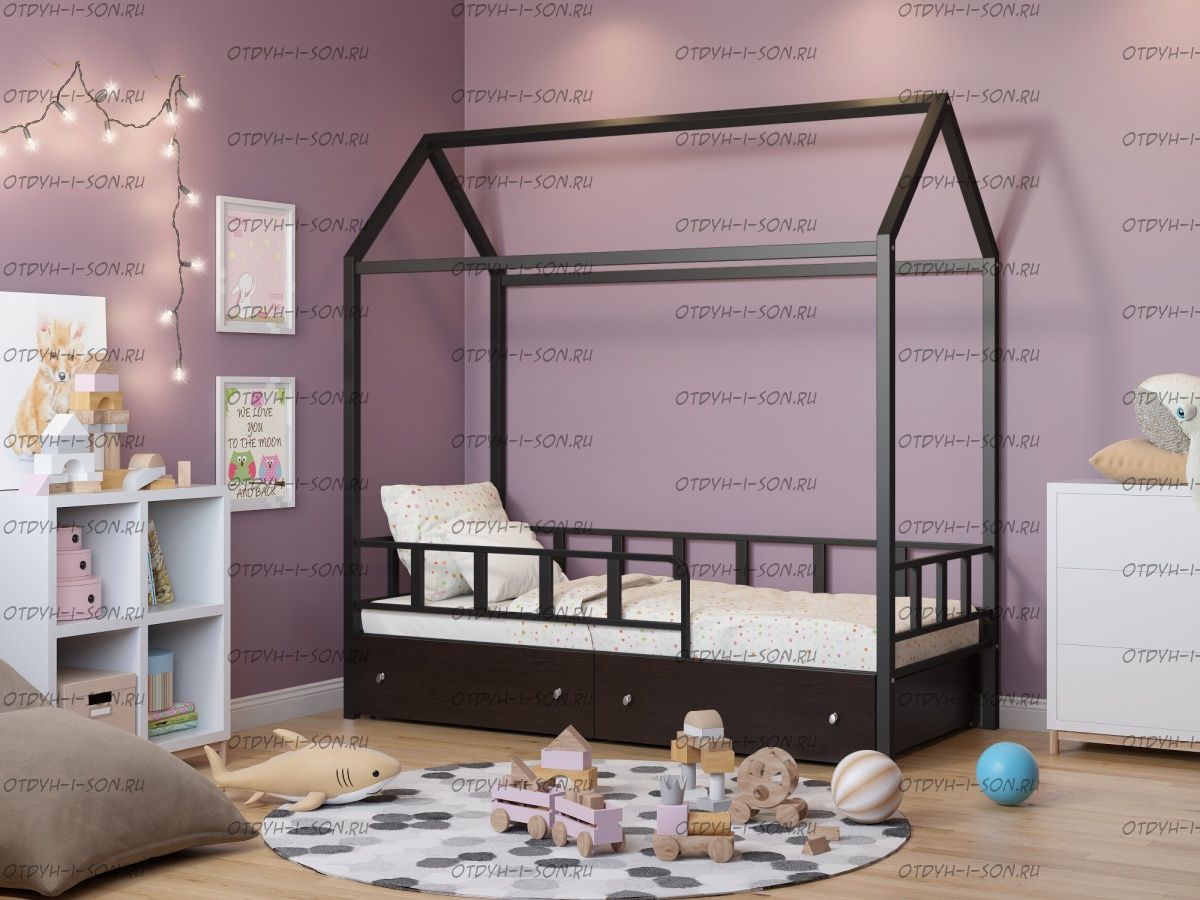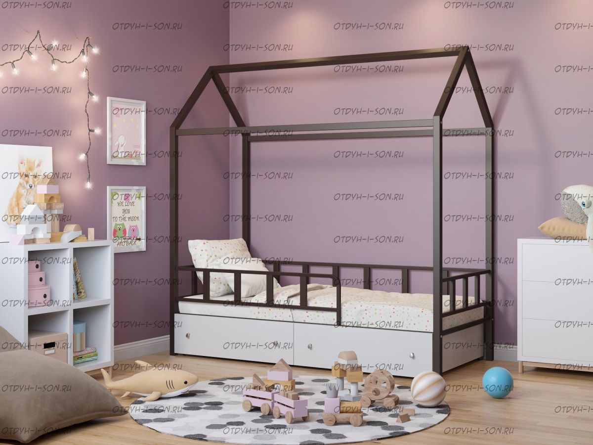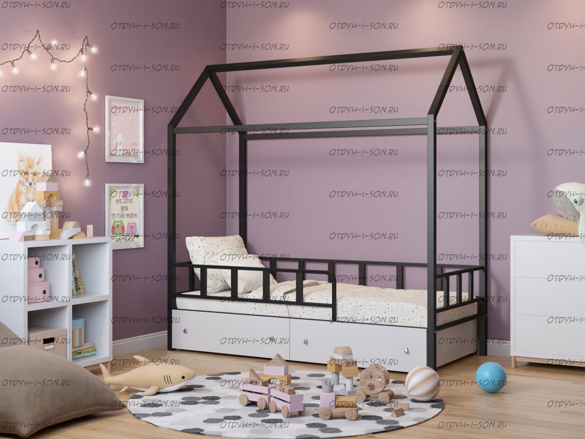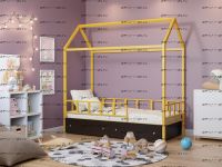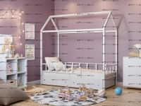 Кровать-домик Рикардо Simple, более 8 цветов Характеристики: Размер спального места (см.): 90х190 см. Габариты (ВхШхГ) см.: Высота от пола до спального места (см.): Вес (кг.): 40 Цвет каркаса: черный, коричневый, бежевый, голубой, серый, зеленый, розовый, оранжевый, белый