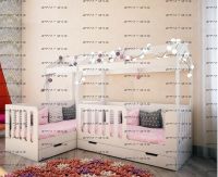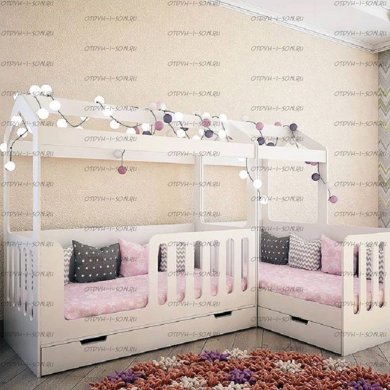 Кровать-домик Сказка ДС-1/1 + ДС-15 для двоих детей без фотопечати, но можно приобрести и с фотопечатью. Комплектация: Кровать Домик Сказка ДС 1/1, 80х160 см. Кровать Домик Сказка ДС-15 угловая, 80х160 см. Ящик подкроватный малый ДС-16 Ящик подкроватный большой ДС-2 (в зависимости от комплектации). Данный ящик также может быть заменен на третье подкатное спальное место Балдахин ДС-8/160 докупается отдельно или идет по акции Балдахин ДС-8/80 докупается отдельно или идет по акции Шторы ДС-9 докупаются отдельно или идут по акции Характеристики: Размеры спальных мест: 80х160 и 80х160 см. Размеры основная кровать: Д 163,2 * Ш 83,6 * В 166 см. Размеры боковая кровать: Д 163,2 * Ш 83,6 * В 166 см. Можно выбрать цвет фасада кровати: белый или цветной вариант из нашей палитры. Задняя спинка изготавливается только в белом цвете. Украсить крышу домика можно балдахином или гирляндой из хлопковых шариков. Также дополнительно можно приобрести бортики на вход в кровать от падения. Действует расширенная гарантия 2 года. Материалы: премиальная Материал: ЛДСП 16 мм (Австрия, Egger)толщина 16 мм, класс экологичности Е1. Толщина ЛДСП 16 мм. Используется мягкая кромка ПВХ (2 мм). Металлические крепления. Ящики на колесиках. Фурнитура: импортная фурнитура Вес: Объем: Цвет: более 15 цветов и оттенков Домик сказка выполнен из высококачественного и надежного ЛДСП. В комплектацию входит высокий борт, что позволяет разместить детей от 1,5 лет и старше. Кровать домик можно использовать без переднего борта, для этого необходимо приобрести дополнительную царгу арт. ДС-11. На заднюю спинку кровати можно нанести рисунок. Выбрать рисунок можно из предложенной палитры. Базовая комплектация — это только корпус кровати. Ящик, шторы и балдахин — приобретается дополнительно.