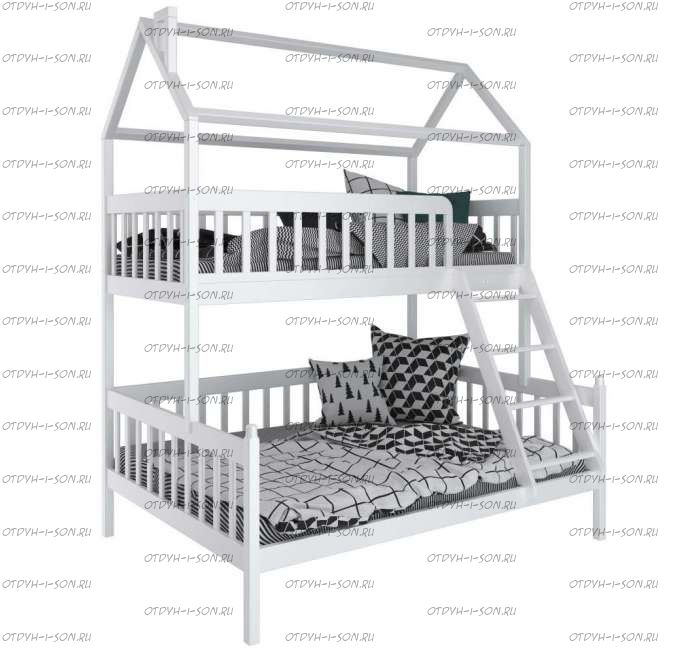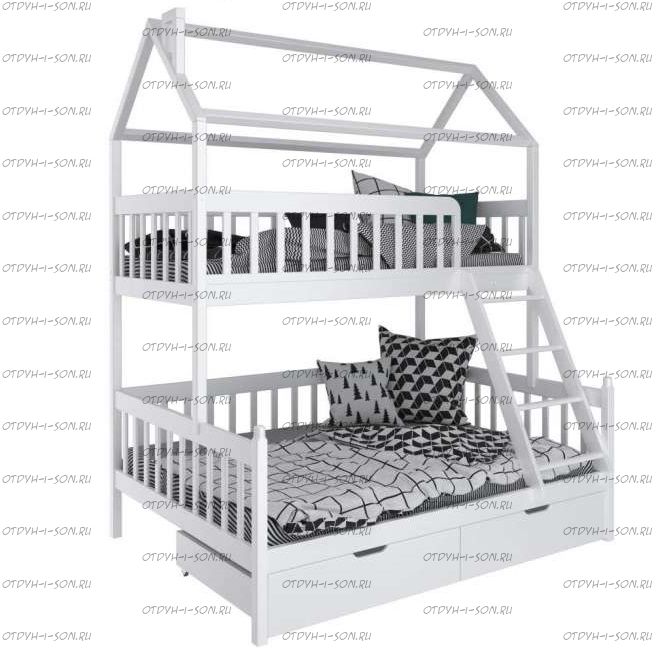 Кровать двухъярусная Домик Standard №8А с лестницей комодом.