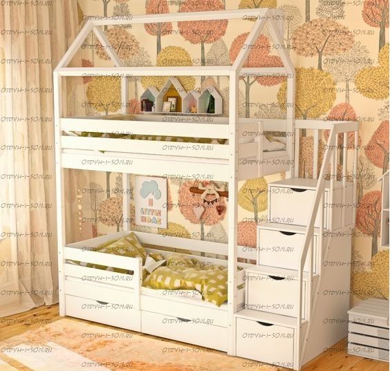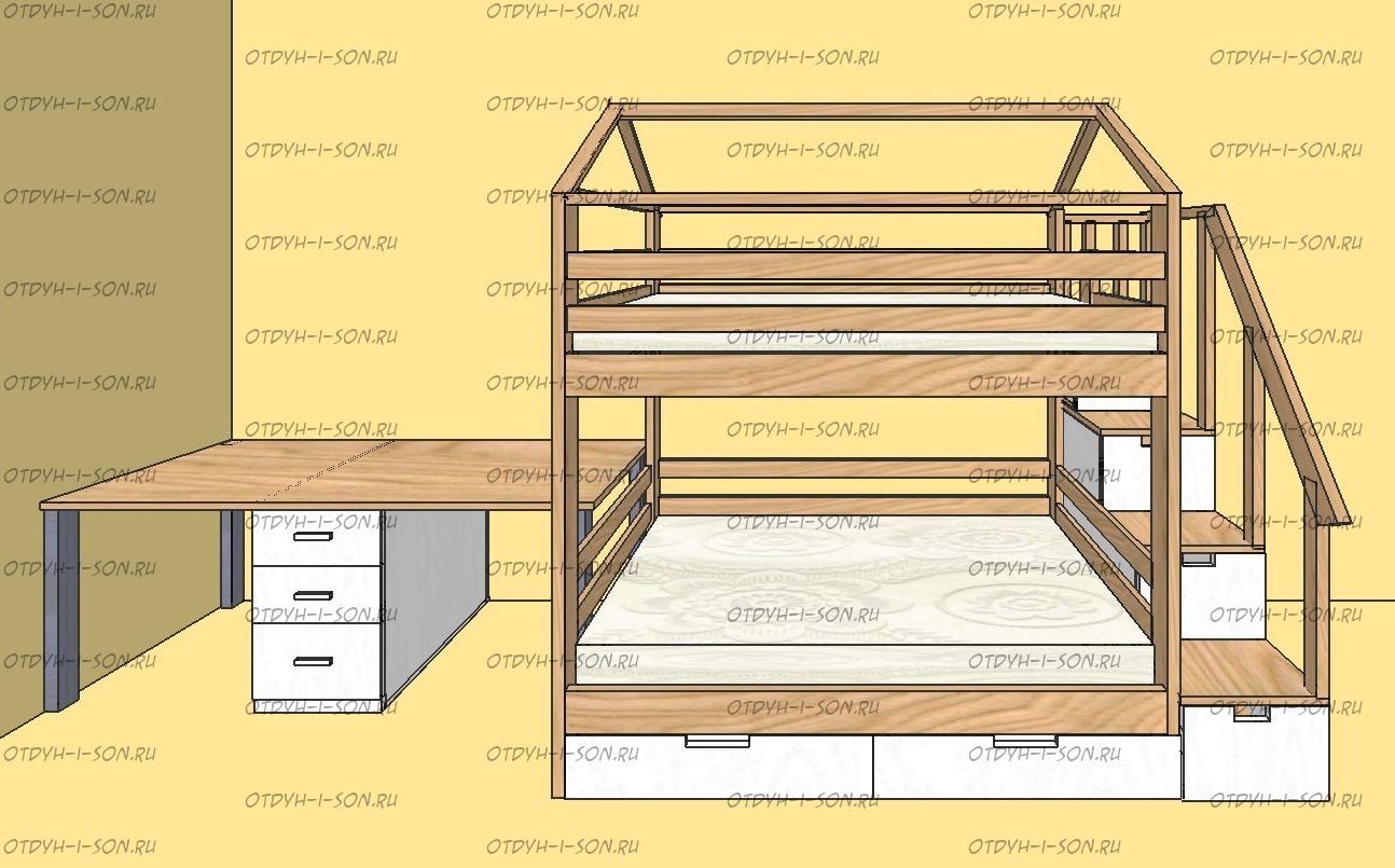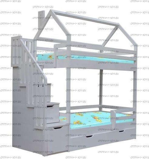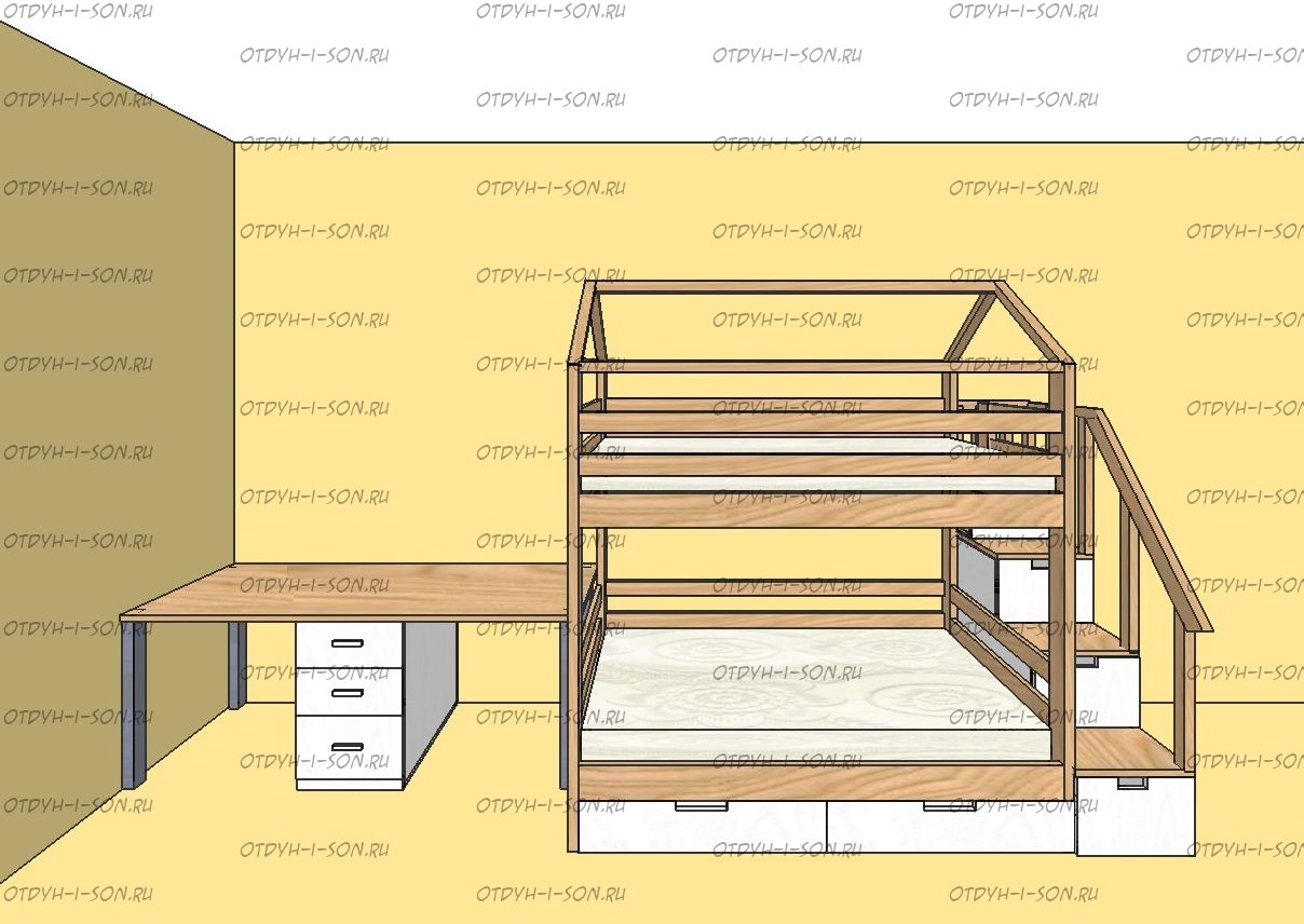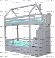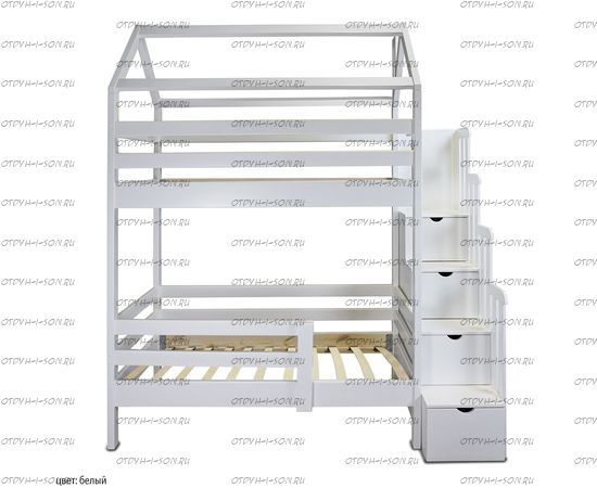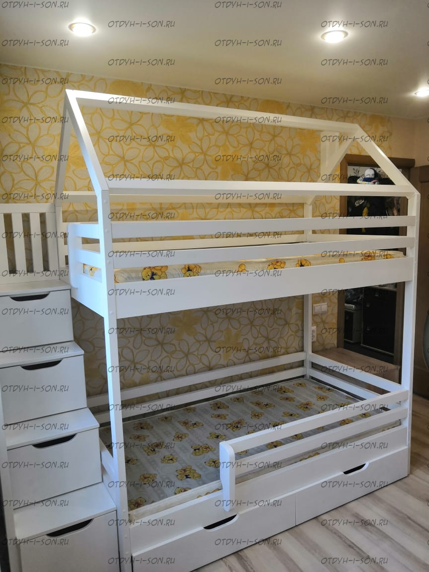 Кровать двухъярусная Домик Standard №8 (Домик Блум) с лестницей комодом.