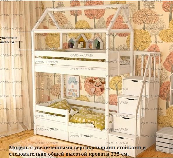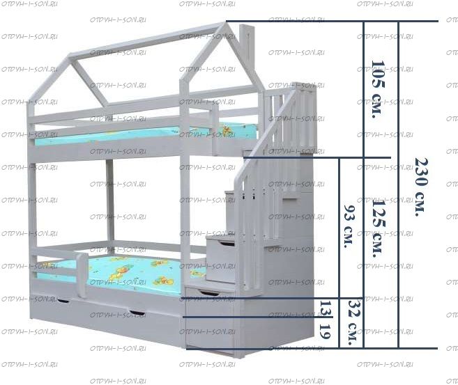 | Размеры изделия | Измеряйте высоту потолка при заказе высоких (двухъярусных и чердаков) кроватей-домиков! |