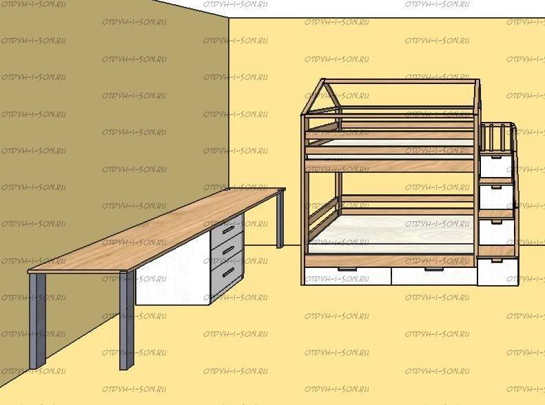 | Тип изделия | Кровать двухъярусная и лестница-комод |