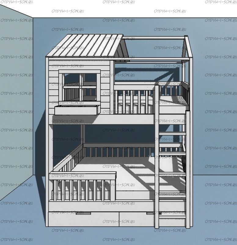 Кровать двухъярусная Домик Standard №28S может быть изготовлена как трехъярусная кровать.