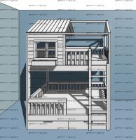 Кровать двухъярусная Домик Standard №28S может быть изготовлена как трехъярусная кровать. Внимание верхняя часть кровати домика Блум может быть разной высоты. в связи с различными высотами потолков в квартирах и домах, уточняйте высоту при заказе. Комплектация: Двухъярусная кровать Лестница, которая выполняется с любой стороны кровати по Вашему запросу. Расположение лестницы кровати не универсально и указывается обязательно оператору. Основание у кровати: поперечные брусья (также дополнительно можно добавить лист оргалита). Подкроватные ящики на колесиках. Матрасы в комплектацию не входят. Размеры лестницы Стандартная глубина лестницы к данной кровати: 90 см. При ширине спального места 70 см.: Возможно изготовление лестницы глубиной 80 см. Если это необходимо, обязательно указывайте этот размер при заказе. При ширине спального места 80 см.: стандартная глубина лестницы 90 см. При ширине спального места 90 см.: стандартная глубина лестницы 90 см. При ширине спального места 120 см.: стандартная глубина лестницы 90 см. Характеристики: Размер спального места: любые. Общая высота: 220 cм. Высота самой царги: 14 см. Высота до царги от пола: 125 см. Высота, на которой начинается уклон крыши домика: 175 см. Уклон крыши: 45 градусов Габаритные Размеры: +10 см к ширине, +50 см к длине. (спального места) Характеристика выкатных ящиков: Комплект состоит из 2х ящиков; Мебельная фанера/ Массив дерева; Ящики на роликах; Дно ящика 5мм ДВП; Ящик двигается по полу. К кровати не фиксируется, установка с любой стороны. Масса в упаковке: Объем в упаковке: Материал: массив сосны 2 подкроватных ящика с колесиками, ящики не закрепляются в кровати и могут выдвигаться с любой стороны кровати (ящики докупаются отдельно). В базовом варианте с тыльной стороны ящиков декоративной планки не предусмотрено Основание под матрас реечное Внимание: возможно увеличение высоты бортиков кровати! Цвет: орех, бук, венге, груша, дуб, каштан, клен, красное дерево, махагон, ольха, сосна, белый (эмаль), слоновая кость (эмаль)