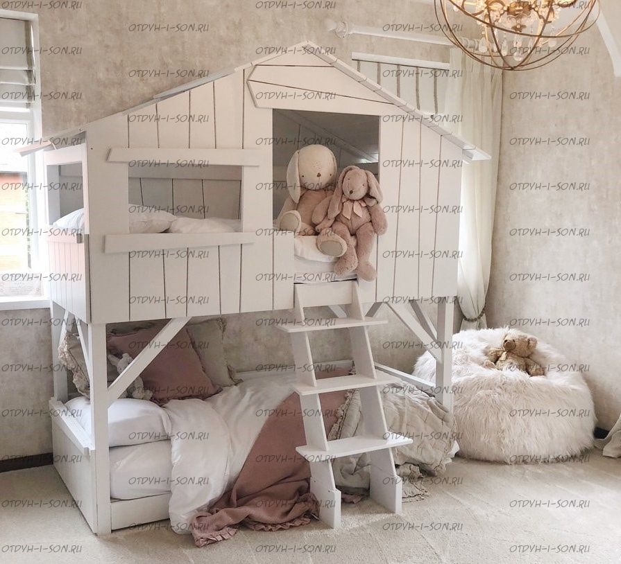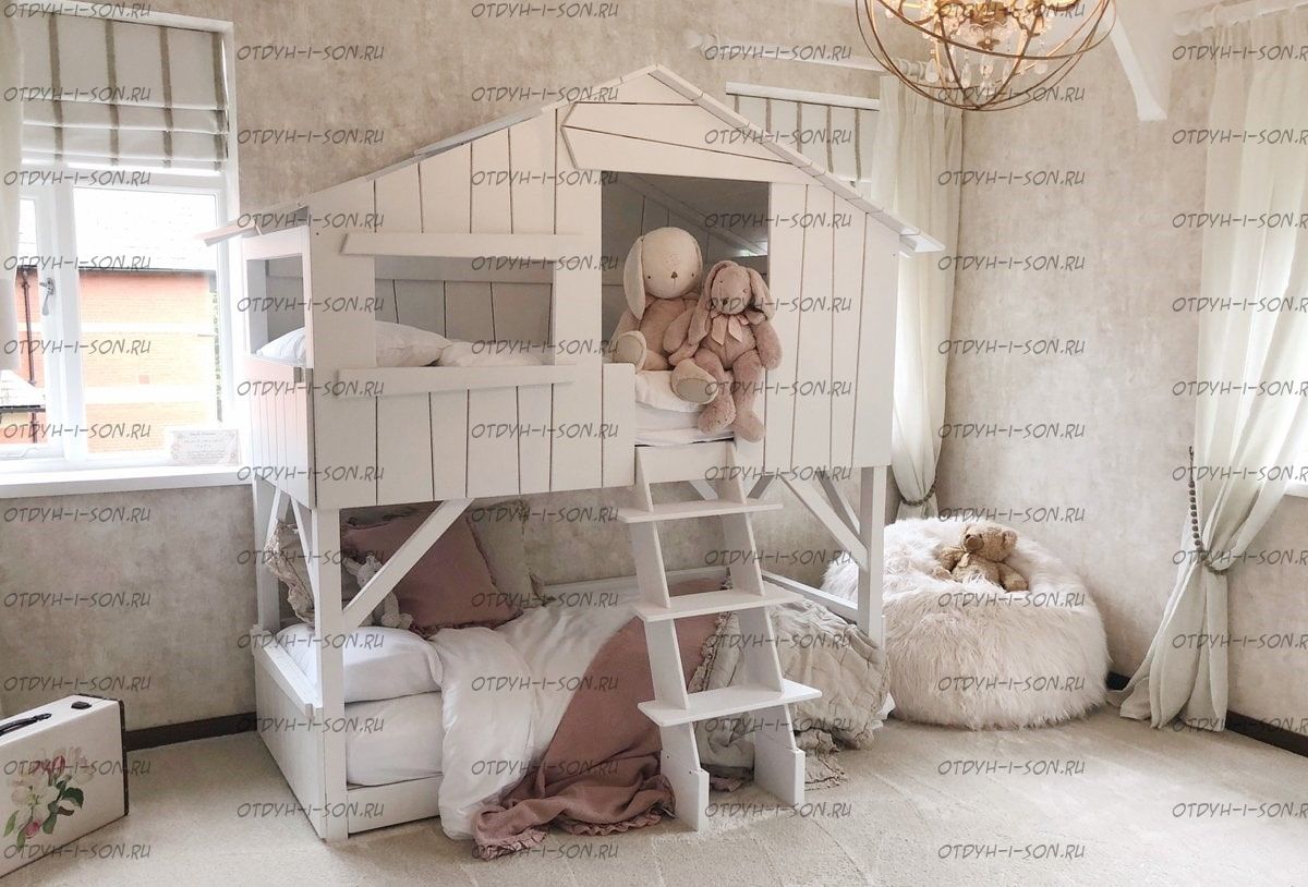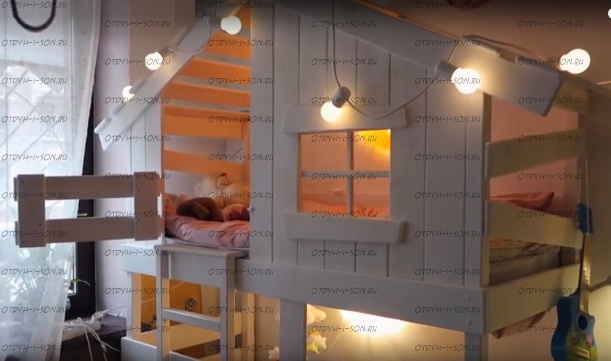 Кровать двухъярусная Домик Depo Roof №1 (Кровать-домик) Характеристики: Размер спального места: любые размеры Массив сосны премиум класса Цвет: любой