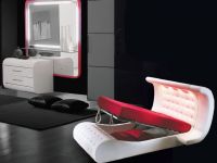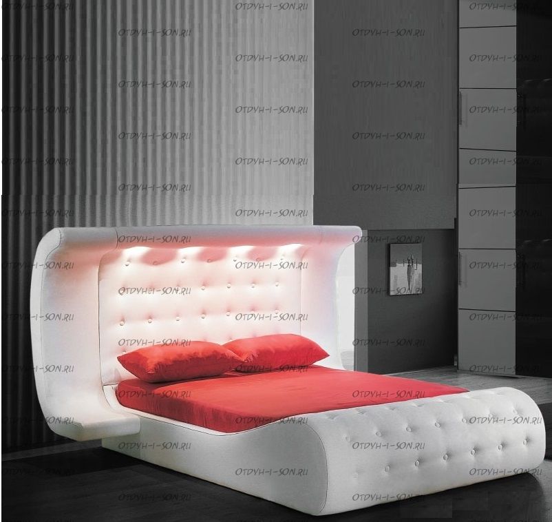Кровать интерьерная Азалия. Поразительная в своем скромном совершенстве и оригинальности мягкая интерьерная кровать «Азалия» не оставит равнодушным даже тех, кому чужд футуристичный стиль. Гладкие дуги ложа, уходящие под обширный козырек у изголовья, придают интерьерной кровати удивительно гармоничный вид. Сдержанность минимализма, нашедшая выражение в форме этой мягкой интерьерной кровати, дополняется креативностью дизайнерских решений, делая эту мягкую интерьерную кровать единственной и уникальной в своем роде.
