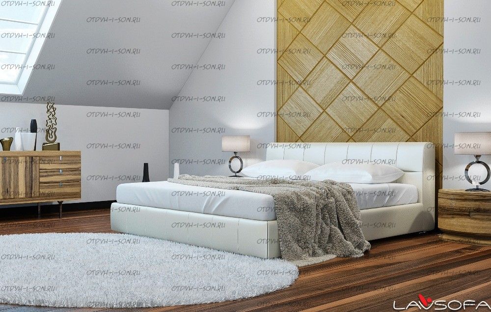 Кровать интерьерная Беленус. Не можете найти кровать, которая смогла бы занять достойное место в интерьере Вашей спальни? Роскошную, с высоким изголовьем, приподнятым основанием… Великолепная интерьерная кровать Белентус просто завораживает своей простой геометрией, незатейливой прострочкой, правильными формами и... отсутствием всяких декоративных элементов в ее исполнении.