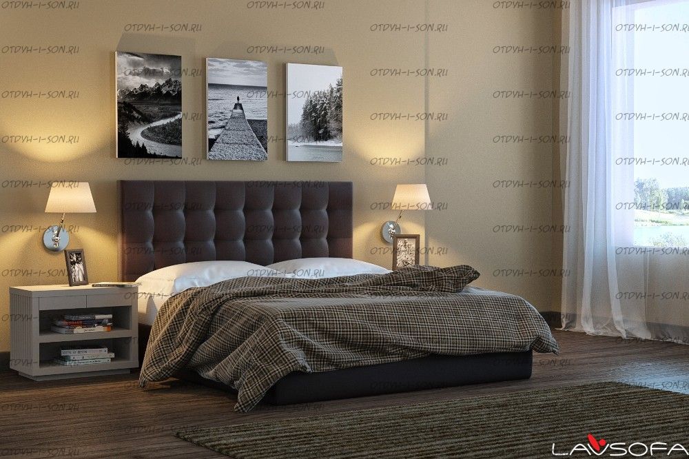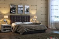 Кровать интерьерная Огма Характеристики: Размер спального места: 140х200, 160х200, 180х200 см. Внешние габариты 160х200 (ШхГхВ): 1750х2350х1010 мм. Материал: Цвет: разные варианты цветов обивки по желанию заказчика