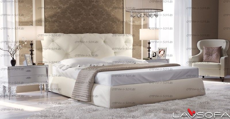 Кровать интерьерная Тесей. Интерьерная кровать Тесей-2 подойдет не только любителям воздушной легкости, но и ценителям спокойного уюта. Мягкое изголовье кровати украшено каретной стяжкой, образующей пышные ромбы. Это создает определенную атмосферу, которую так и хочется подчеркнуть романтическим завтраком с кофе в постель.