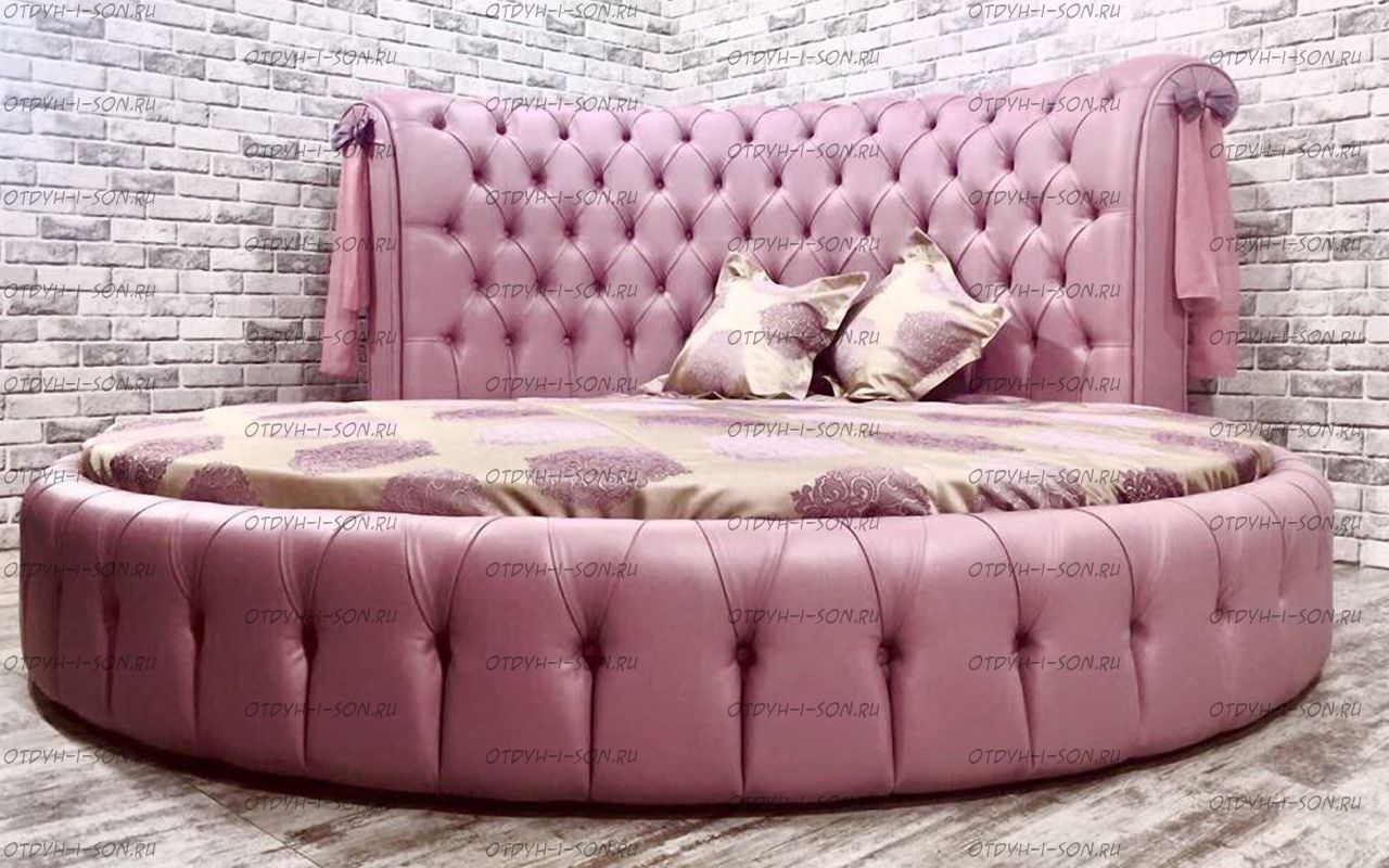 | Внимание | расположение соединительных швов и частей кровати, толщина спинки, шаг каретной стяжки, тип ножек, наличие и вид бантов, страз, пуговиц и другой фурнитуры обсуждается при заказе круглой кровати! |