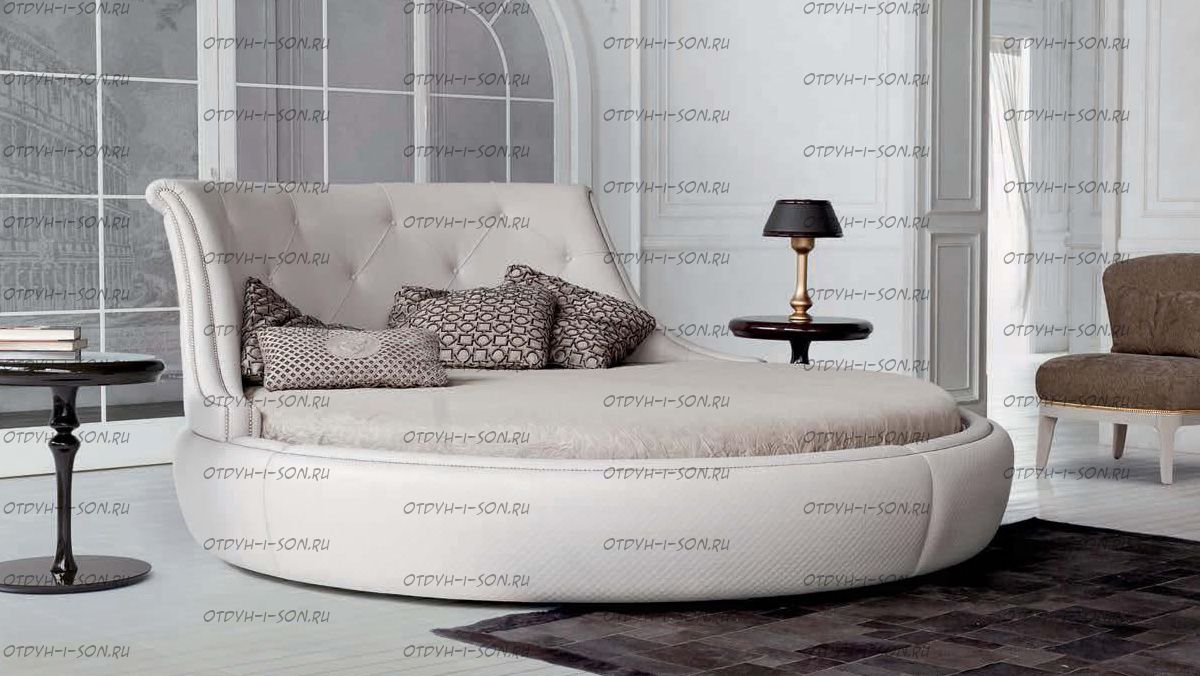 Состоит данная модель кровати из 3 частей, которые легко собираются между собой. Основание может быть деревянным и металлическим. Расцветка круглой кровати и материал обивки могут быть исполнены в самых различных вариантах.
