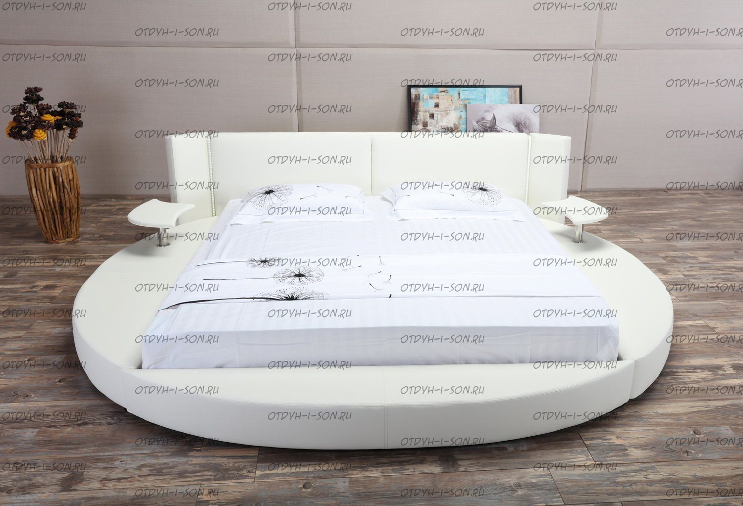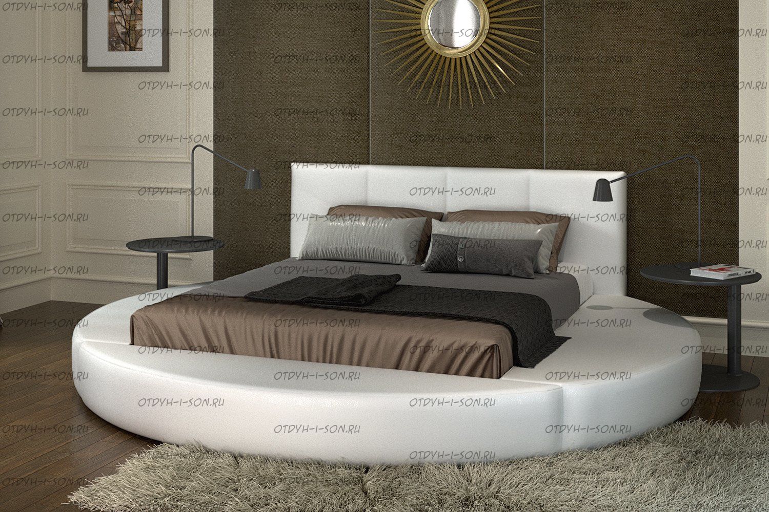 Состоит данная модель кровати из 3 частей, которые легко собираются между собой. Основание может быть деревянным и металлическим. Расцветка круглой кровати и материал обивки могут быть исполнены в самых различных вариантах.