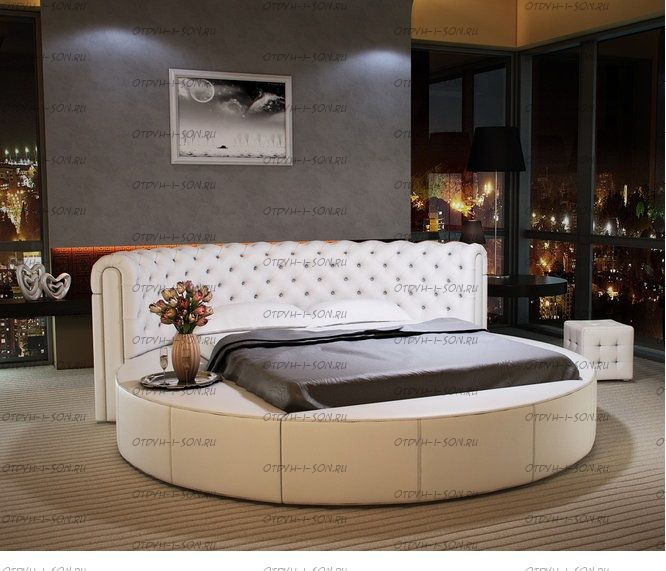 Состоит данная модель кровати из 2 или 3 частей, которые легко собираются между собой. Основание может быть деревянным и металлическим, круглым или квадратным. Расцветка круглой кровати и материал обивки могут быть исполнены в самых различных вариантах.
