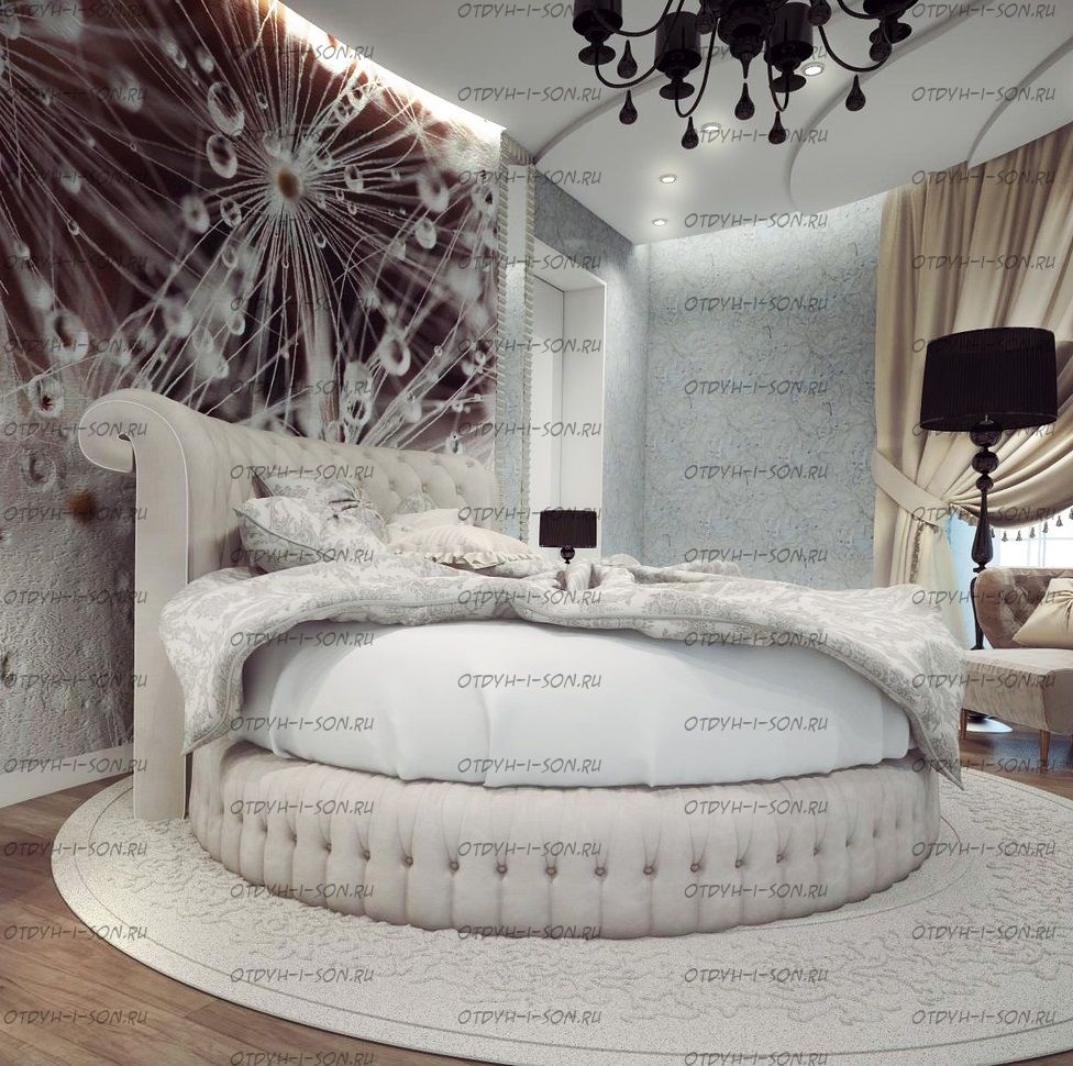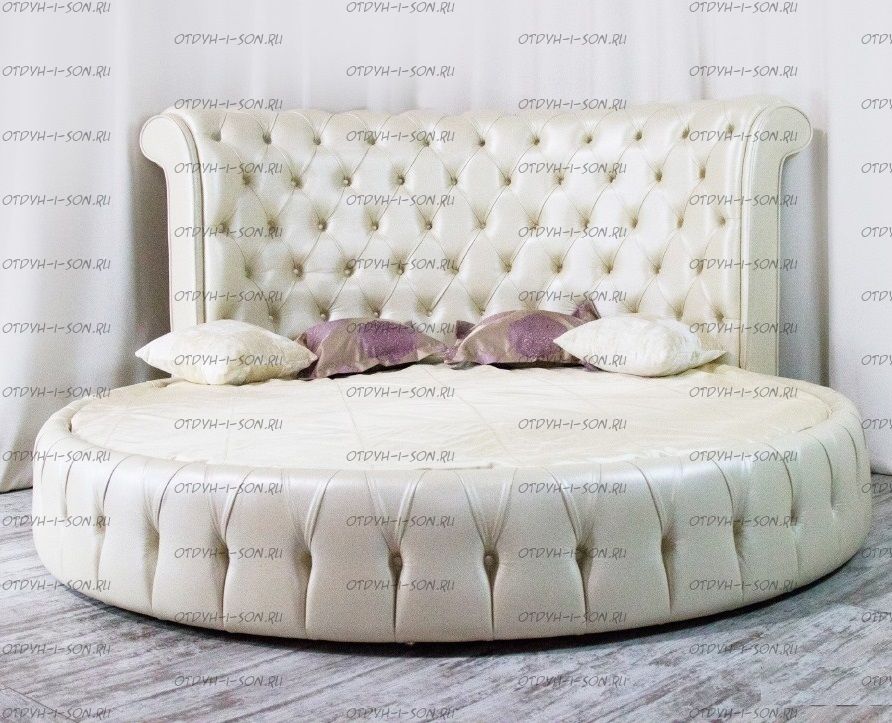 | Внимание | расположение соединительных швов и частей кровати, толщина спинки, шаг каретной стяжки, тип ножек, наличие и вид бантов, страз, пуговиц и другой фурнитуры обсуждается при заказе круглой кровати! |