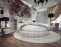 Состоит данная модель кровати из 3 частей, которые легко собираются между собой. Основание может быть деревянным и металлическим. Расцветка круглой кровати и материал обивки могут быть исполнены в самых различных вариантах.