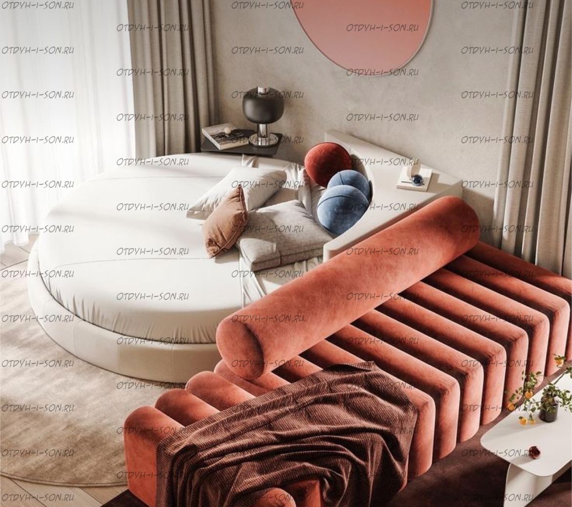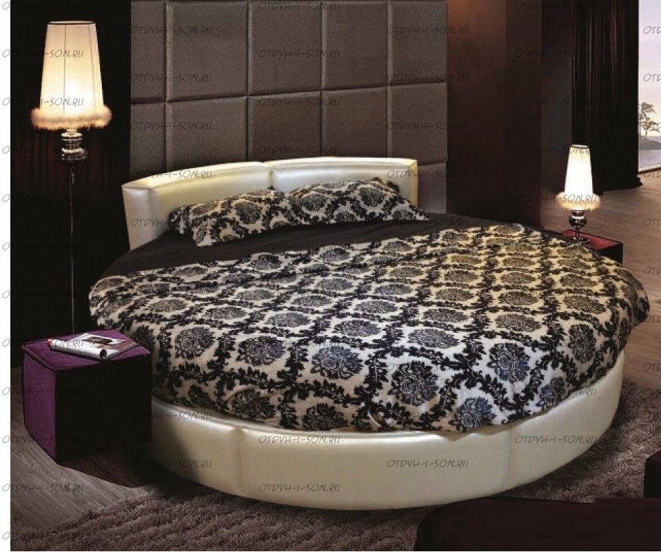 Состоит данная модель кровати из 3 частей, которые легко собираются между собой. Основание может быть деревянным и металлическим. Расцветка круглой кровати и материал обивки могут быть исполнены в самых различных вариантах.