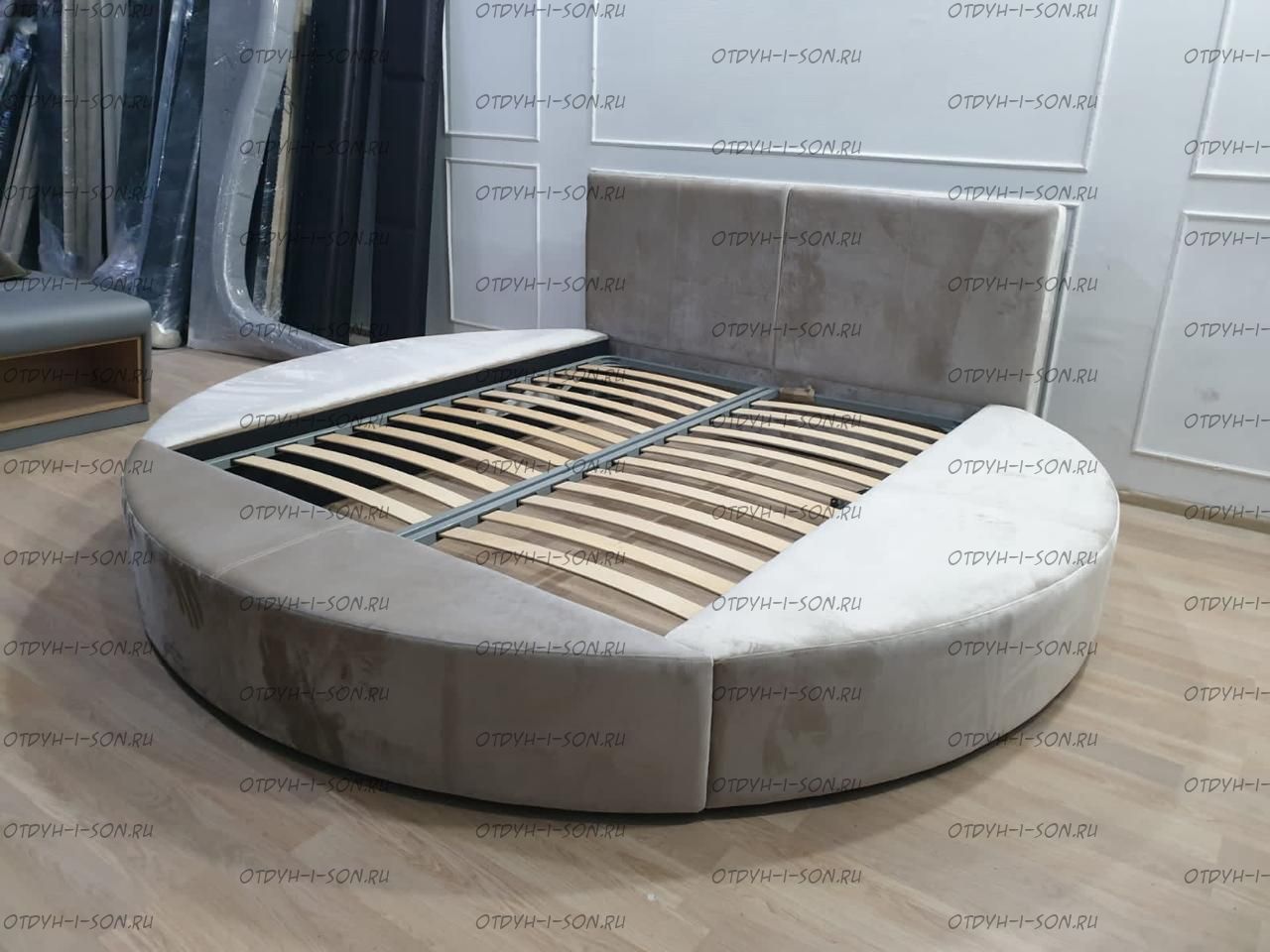 Состоит данная модель кровати из 3 частей, которые легко собираются между собой. Основание может быть деревянным и металлическим. Расцветка круглой кровати и материал обивки могут быть исполнены в самых различных вариантах.