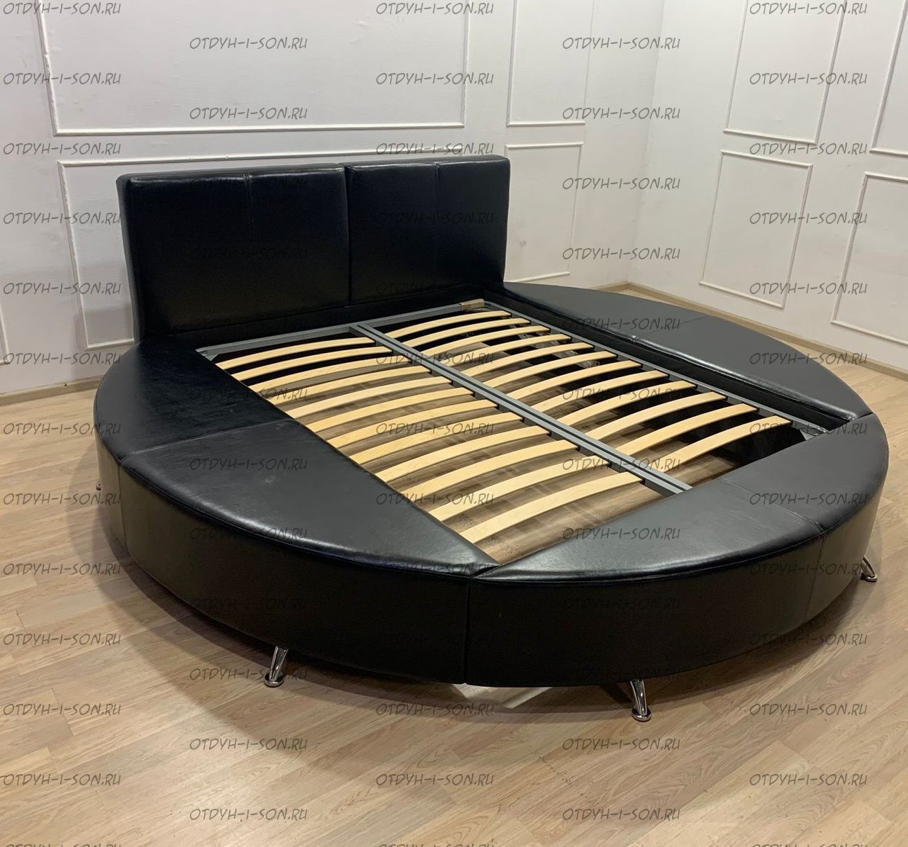 | Внимание | расположение соединительных швов и частей кровати, толщина спинки, шаг каретной стяжки, тип ножек, наличие и вид бантов, страз, пуговиц и другой фурнитуры обсуждается при заказе круглой кровати! |