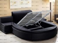 Состоит данная модель кровати из 3 частей, которые легко собираются между собой. Основание может быть деревянным и металлическим. Расцветка круглой кровати и материал обивки могут быть исполнены в самых различных вариантах.
