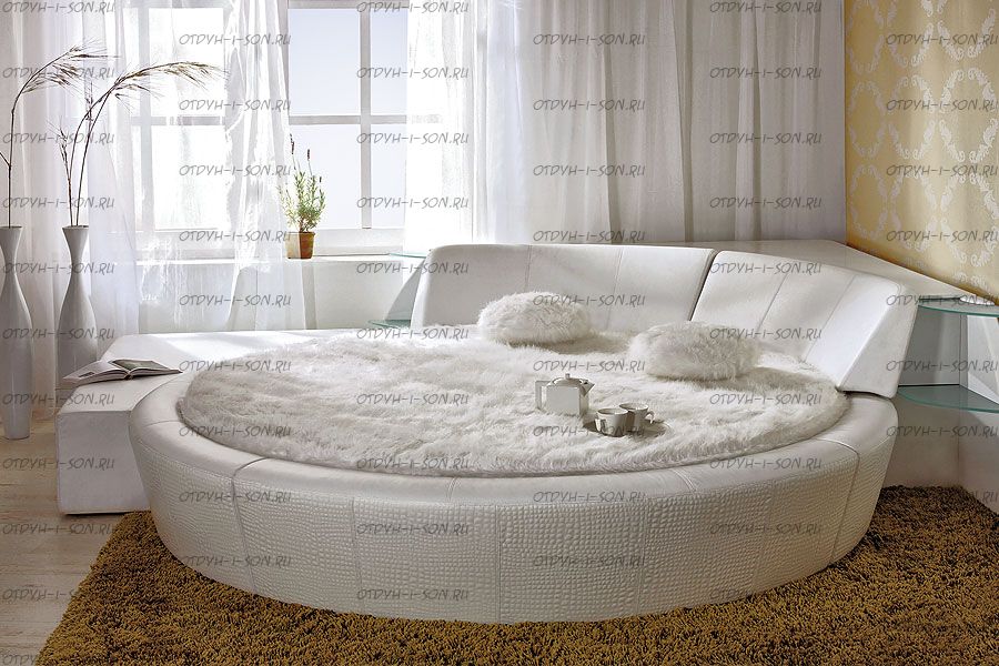 Состоит данная модель кровати из 3 частей, которые легко собираются между собой. Основание может быть деревянным и металлическим. Расцветка круглой кровати и материал обивки могут быть исполнены в самых различных вариантах.