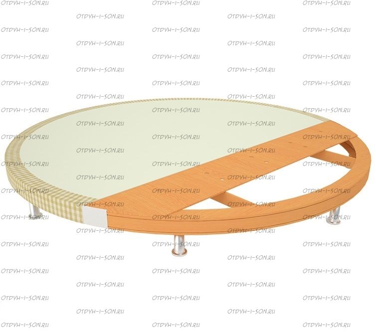 В целях удобства и для того чтобы не скользил матрас, верхняя часть круглого кроватного блока Диана обивается тканью, обычно это нетканое полотно (при изготовлении круглых боксов диаметром 200 см. и более кроватный бокс Диана будет состоять из двух половин).