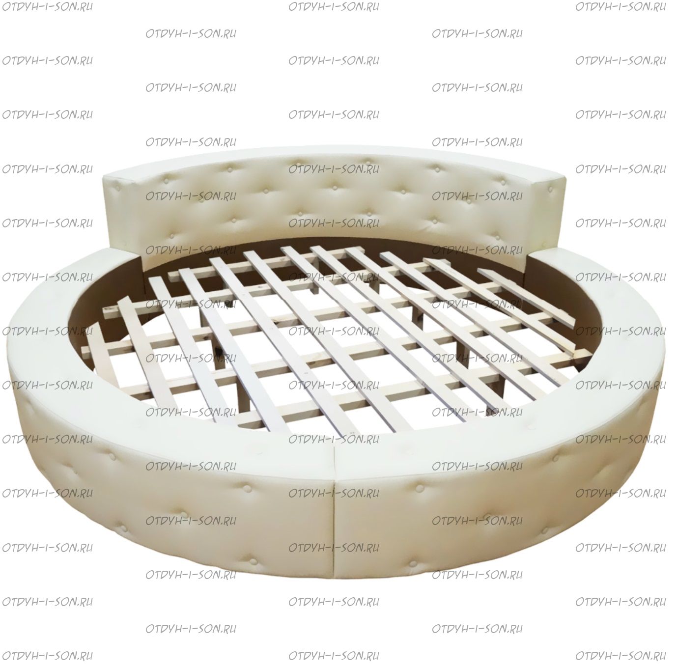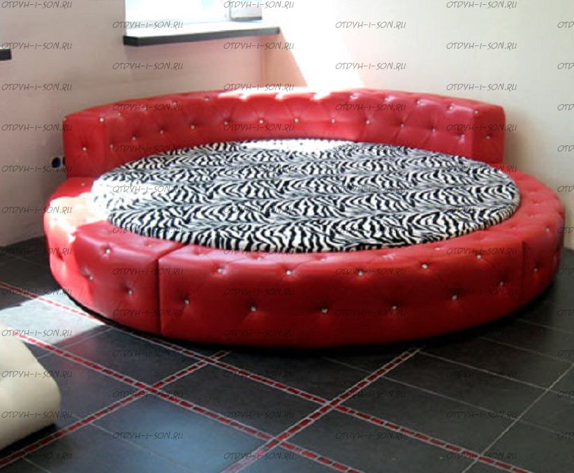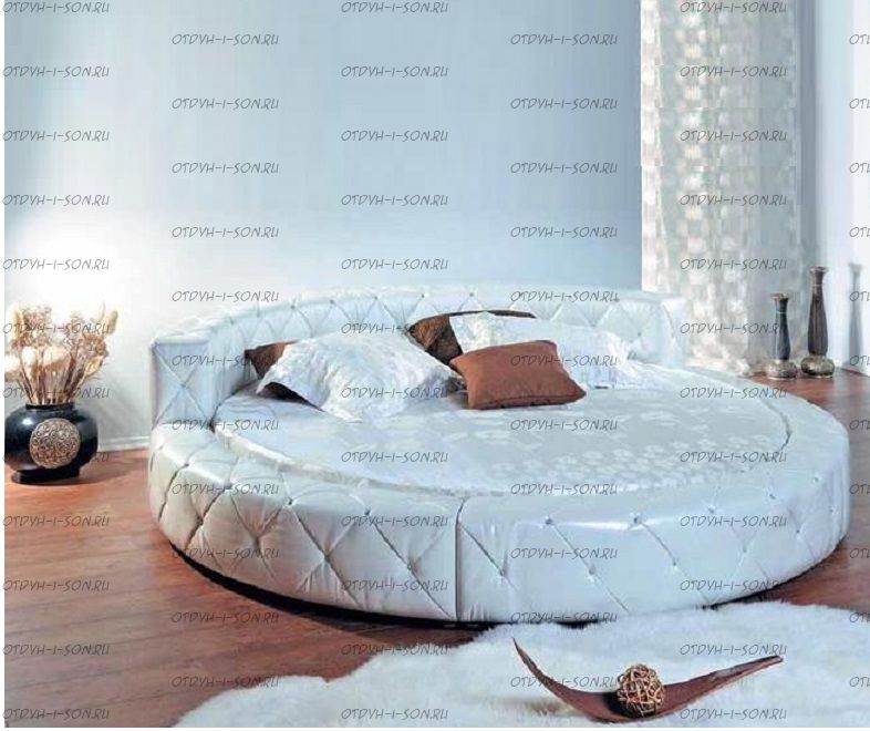 Состоит данная модель кровати из 3 частей, которые легко собираются между собой. Основание может быть деревянным и металлическим. Расцветка круглой кровати и материал обивки могут быть исполнены в самых различных вариантах.