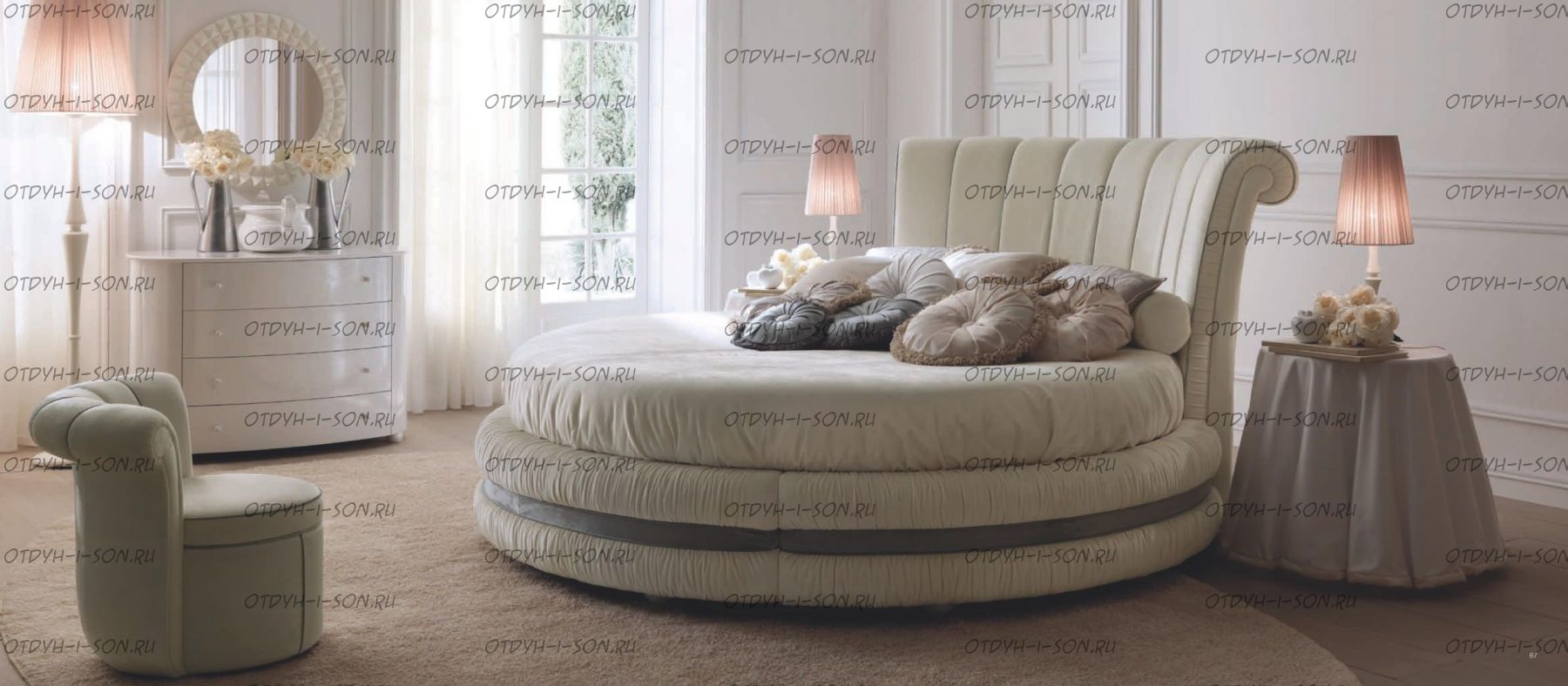 Кровать круглая Letto Rotondo GM 1101 Характеристики: Размер спального места (диаметр): 180 см, 190 см, 200 см, 210 см, 220 см, 230 см, 240 см и любые другие по Вашим эскизам, замерам или фотографиям Материал: Цвета и виды обивки: любые варианты цветов и видов тканей, кожи и экокожи по желанию заказчика, более 200 вариантов расцветок и тканей Данная мягкая мебель может быть изготовлена с любыми видами стяжки, а так же с каретной стяжкой ручной работы, на заказ, по любым эскизам или фотографиям.