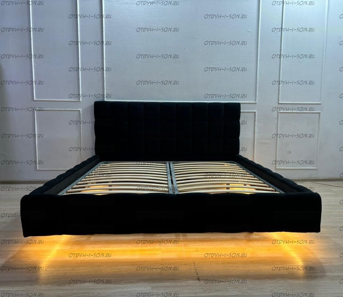 Кровать парящая Анабель Характеристики: Размер: 140х200, 160х200, 180х200 см Внешние габариты: Ламельное основание: докупается отдельно Материал: ЛДСП, ДСП, ДВП, брусок хвойный сухой Обивка кровати: экокожа, ППУ 20-40 мм, синтепон 100-200 гр./м2 Цвета и ткани обивки: любые