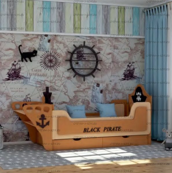 Кровать-пиратский корабль №К Характеристики: •Размеры верхнего спального места: 80х160 см.,90х180 см.,90х200 см.и любые другие •Внешние размеры кровати: •Габаритные размеры: любые •Материалы: массив сосны •Цвет покрытия: любая цветовая гамма (таблица палитры Ral);