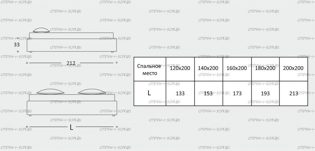 Кровать-подиум с классическим основанием Характеристики: Размер спального места: 120Х200, 140Х200, 160Х200, 180Х200, 200Х200 см. Габариты кровати по ширине: 133, 153, 173, 193, 213