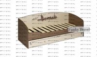 Кровать с выдвижным ящиком Фанки Тревел ФТР-01. Детская кровать Фанки Тревел ФТР-01 созданна так же и для подростков. Кровать практична и имеет свой неповторимый стиль с темой путешествий по разнвм странам. Кровать имеет один выдвижной ящик для вещей и постельного белья, который внутри разделен перегородкой. Полноценное спальное место - 2000х800 мм., в основании - ортопедическая решетка. Материал производства - австрийское ЛДСП (16 мм толщина), цвет на выбор - Дуб Шамони и Дуб Молочный. Фасад - прямая фотопечать. Ручки на выдвижном ящике для белья - пластиковые, на торцах ЛДСП - кромка ПВХ (2 мм толщина), металлическая фурнитура. Кровать может идти как самостоятельным модулем так и в купе с другими модулями мебели Фанки Тревел