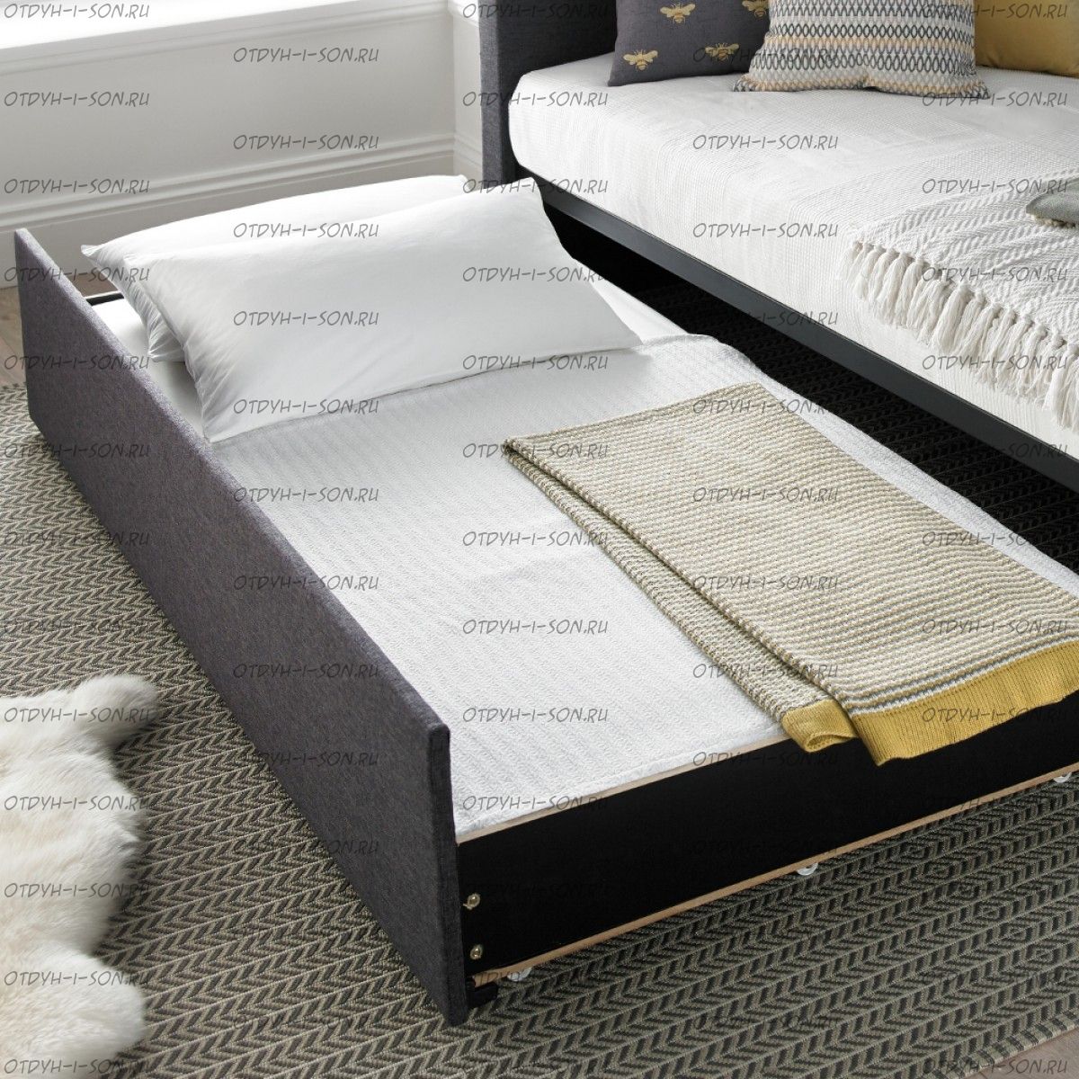 | Комплектация | Кровать может быть изготовлена в различных видах комплектации: кровать с ламельным основанием, с механизмом дельфин, с бельевым ящиком и подъемным механизмом, с ящиками подкроватными, с подкатным дополнительным спальным местом или вообще в виде дивана! |