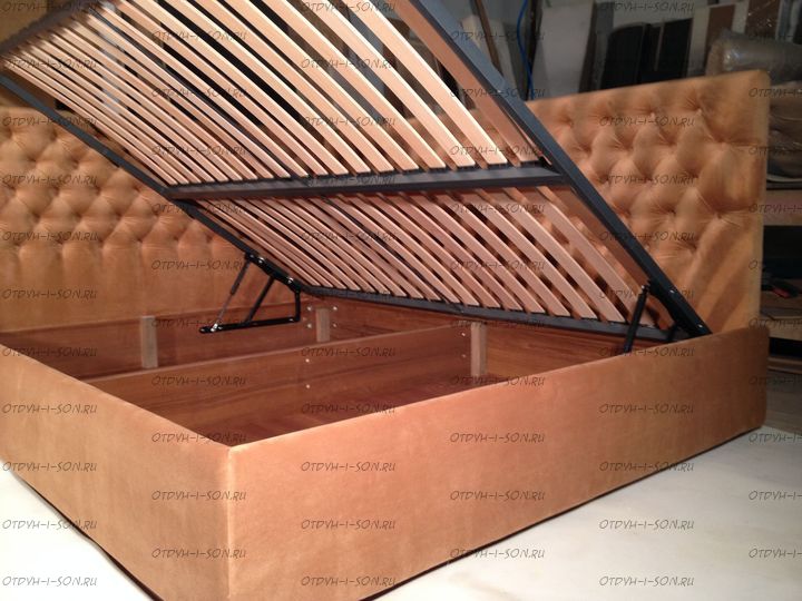 | Комплектация | Кровать может быть изготовлена в различных видах комплектации: кровать с ламельным основанием, с механизмом дельфин, с бельевым ящиком и подъемным механизмом, с ящиками подкроватными, с подкатным дополнительным спальным местом или вообще в виде дивана! |