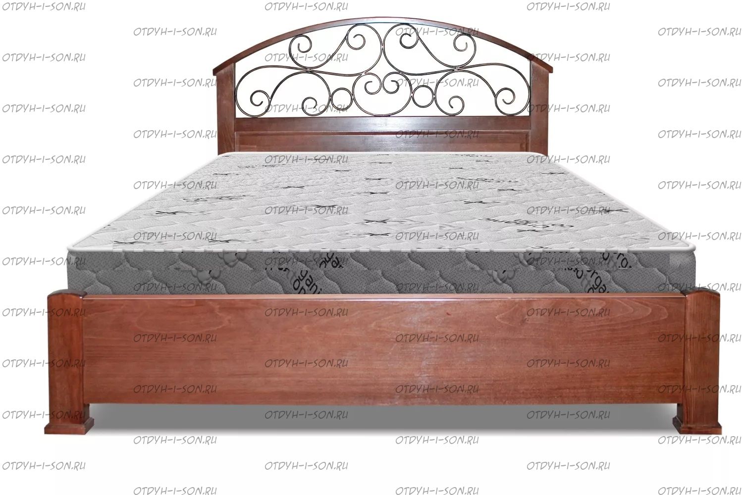Кровать Лаура (ковка) М Характеристики: Размер спального места: 80х190/195/200, 90х190/195/200, 120х190/195/200, 140х190/195/200, 160х190/195/200, 180х190/195/200, 200х190/195/200 см. Комбинированная кровать: Массив сосны и вставки из экологически чистой мебельной фанеры Спинка в изголовье имеет резные элементы с художественной резьбой Габариты кроватей: Высота днища кроватей: Высота от пола до спального места: 25 см. Высота от пола до царги: 19 см. Ширина царги - 16 см., из них 10 см. составляет бортик, который держит матрас, остальные 6 см. под спальным местом, закрывают собой фурнитуру Основание кровати: да, в комплекте Подкроватные ящики: за дополнительную плату Ящики изготавливаются на колесиках и не прикрепляются к кровати, поэтому могут устанавливаться "лицом" к любой из боковыйх сторон кровати. Высота спинки в изголовье кровати: Крепления кровати: В базовом варианте с тыльной стороны ящиков декоративной планки не предусмотрено. Вес: 45-60кг. Любые размеры, в том числе и нестандартные Цвет: венге 1, венге 2, венге 3, венге 4, венге тон 2, коричневый тон 2, коричневый 1, коричневый 2, коричневый 3, коричневый 4, красно-коричневый тон 2, красно-коричневый 1, красно-коричневый 2, красно-коричневый 3, красно-коричневый 4, лак Изготовление из массива березы плюс 30% Изготовление в белом цвете или слоновая кость плюс 20%