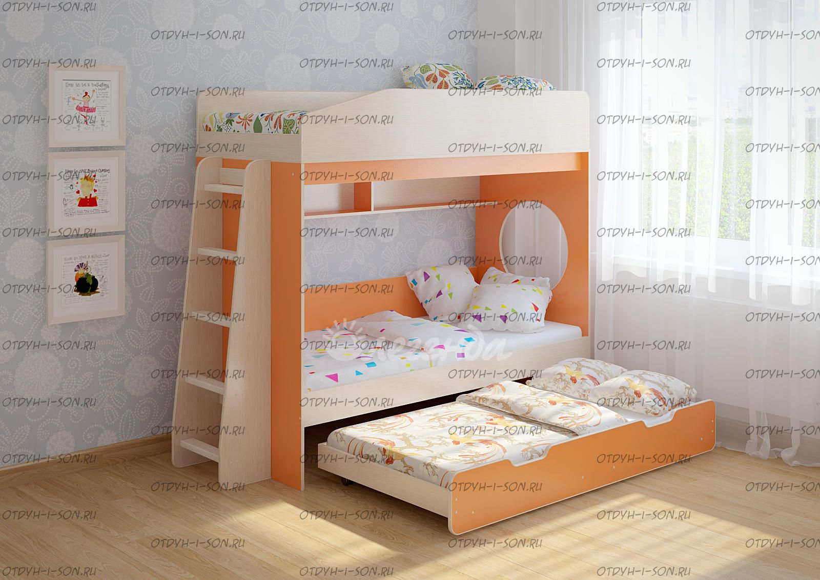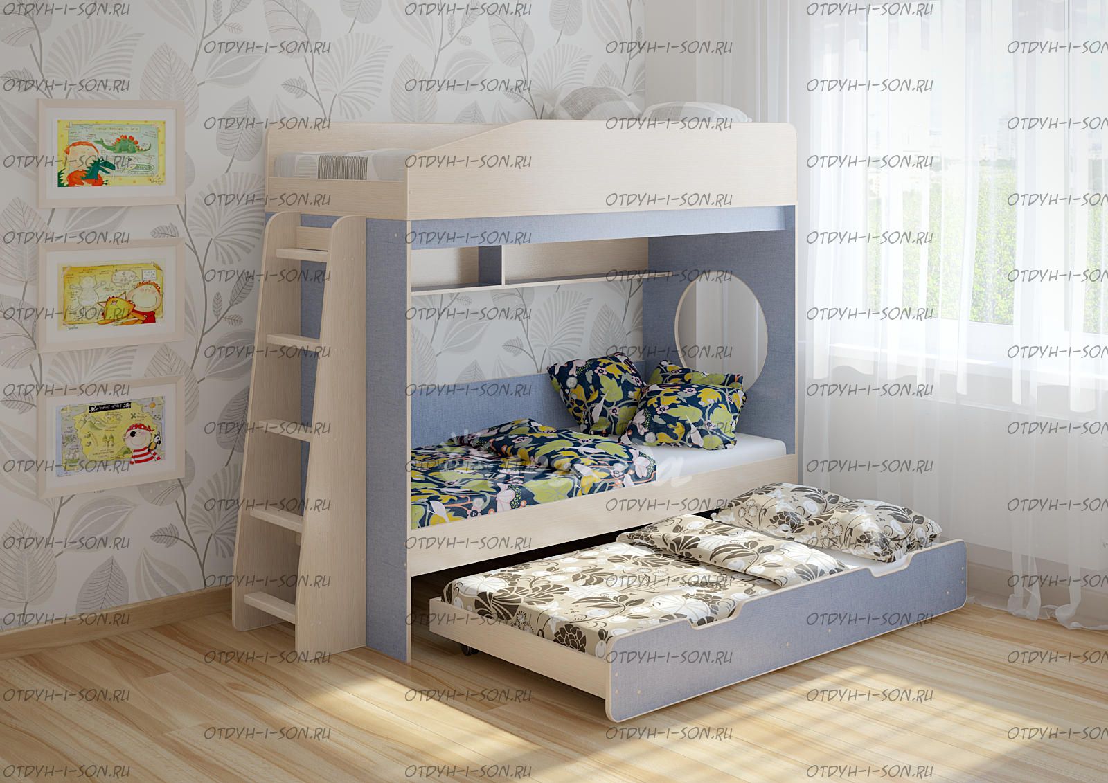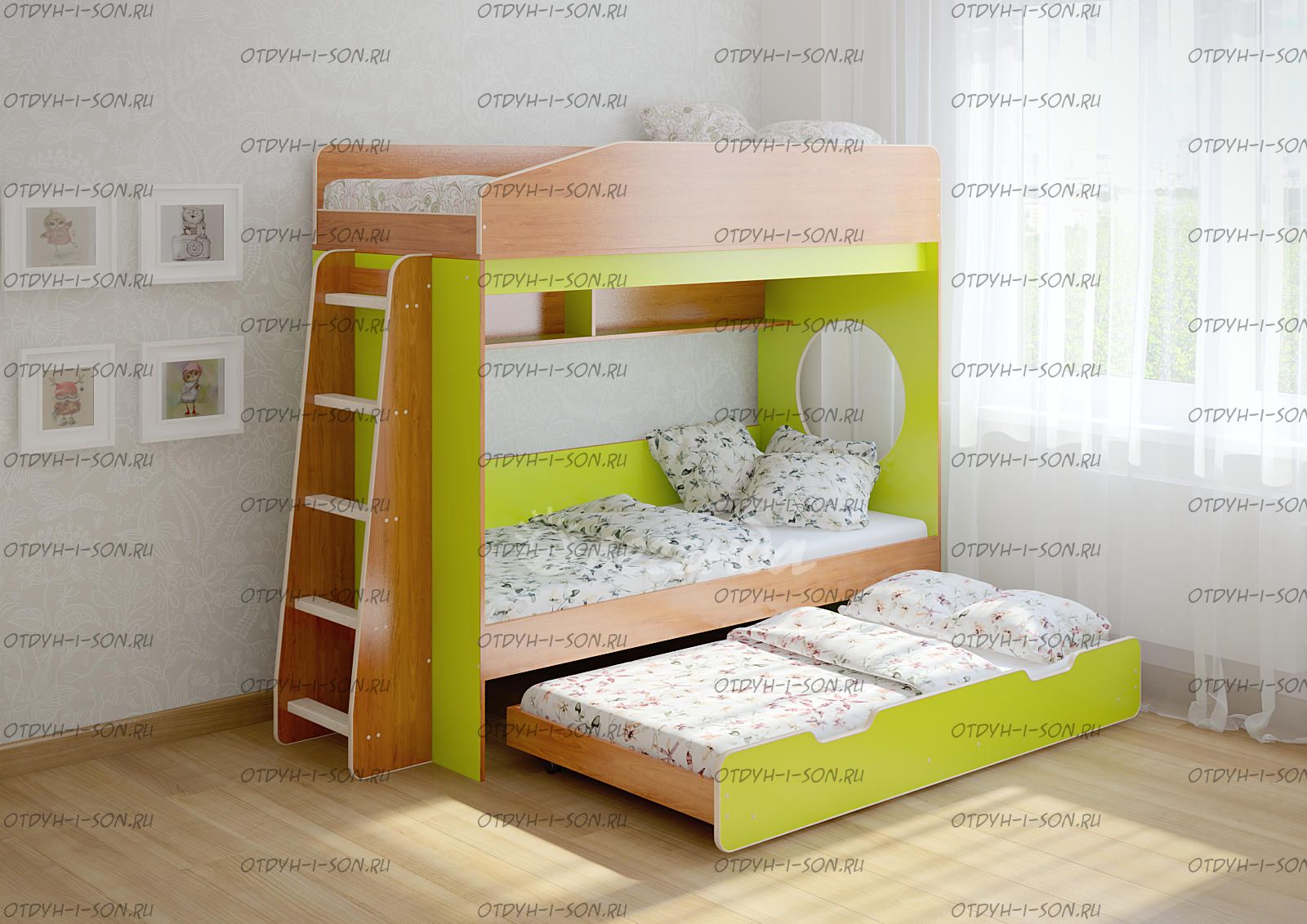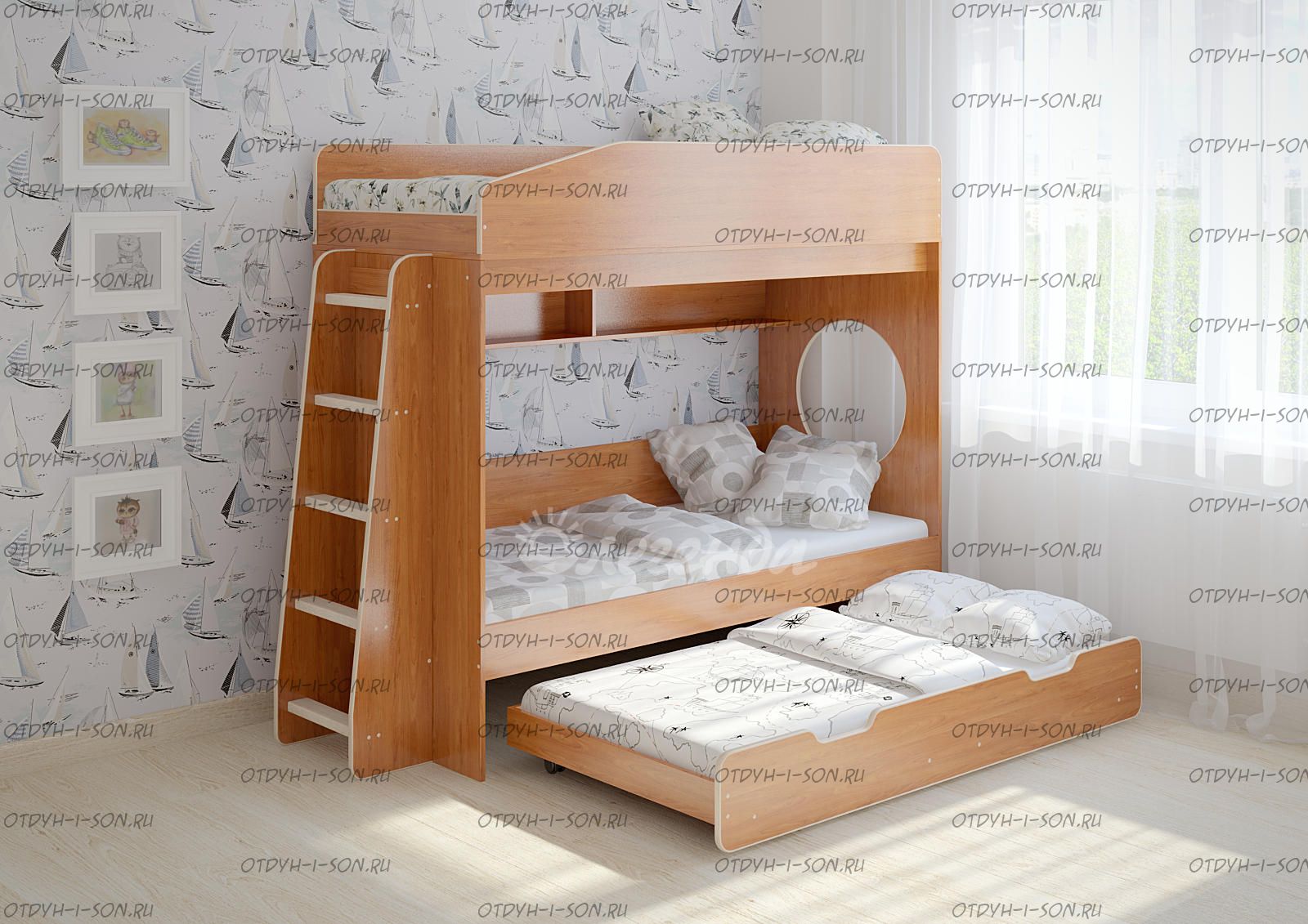 Третье спальное место 1600х800 выдвижной ярус - представлен большим выкатным ящиком,спроектированным таким образом,что может быть использован и как ящик для хранения вещей,и как отдельное спальное место 1600х800!