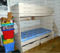 - Выдвижные ящики служат большими помощниками для наведения порядка в детской комнате, очень вместительны, их можно использовать для хранения постельного белья либо игрушек.